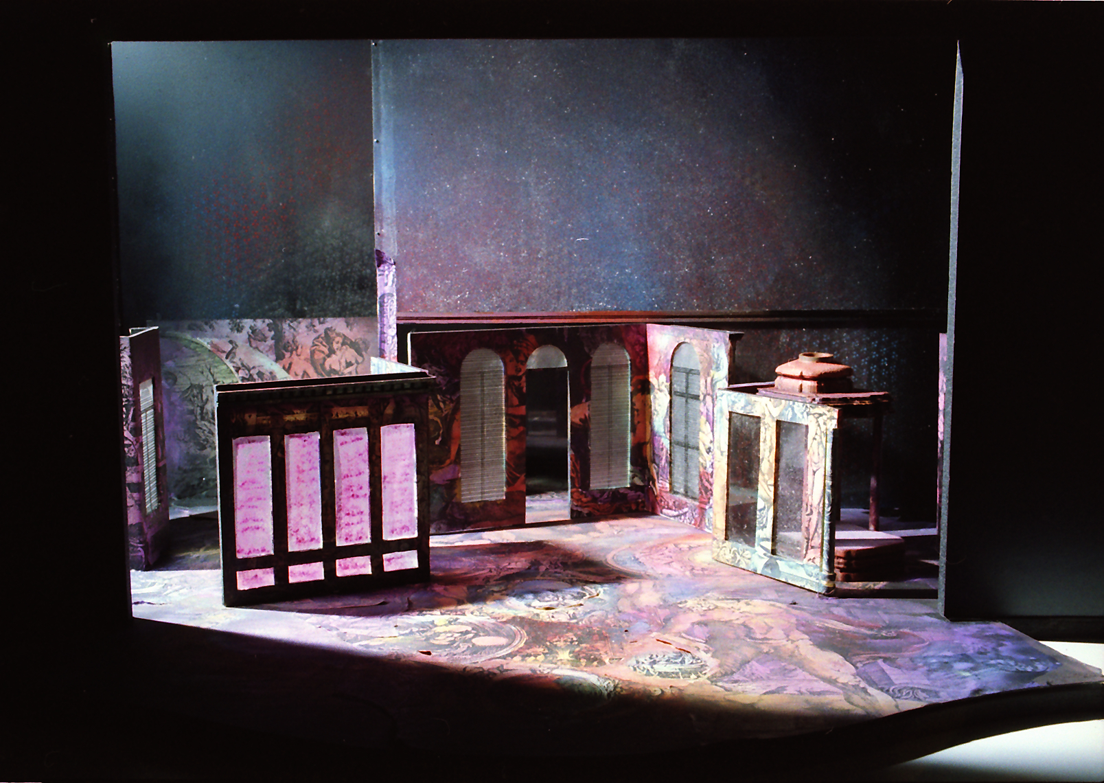 Fotografi av scenografimodellen til Nationaltheatrets produksjon Farlige forbindelser (1988)