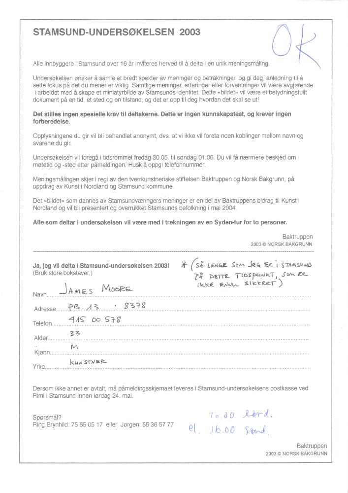 Påmeldingsskjema for deltakelse i Stamsundundersøkelsen