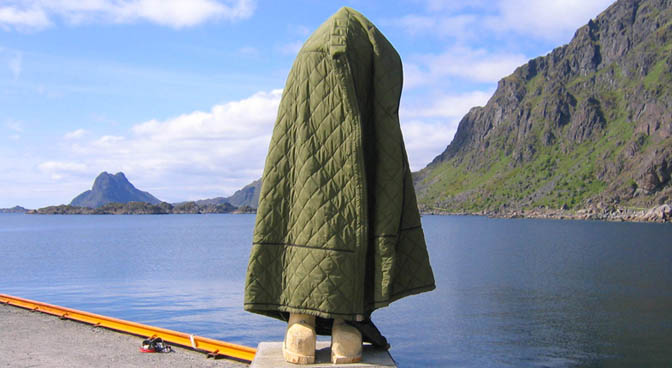 Fotografi av Baktruppens performance "Stamsundundersøkelsen & Turisten" (2003/2004)