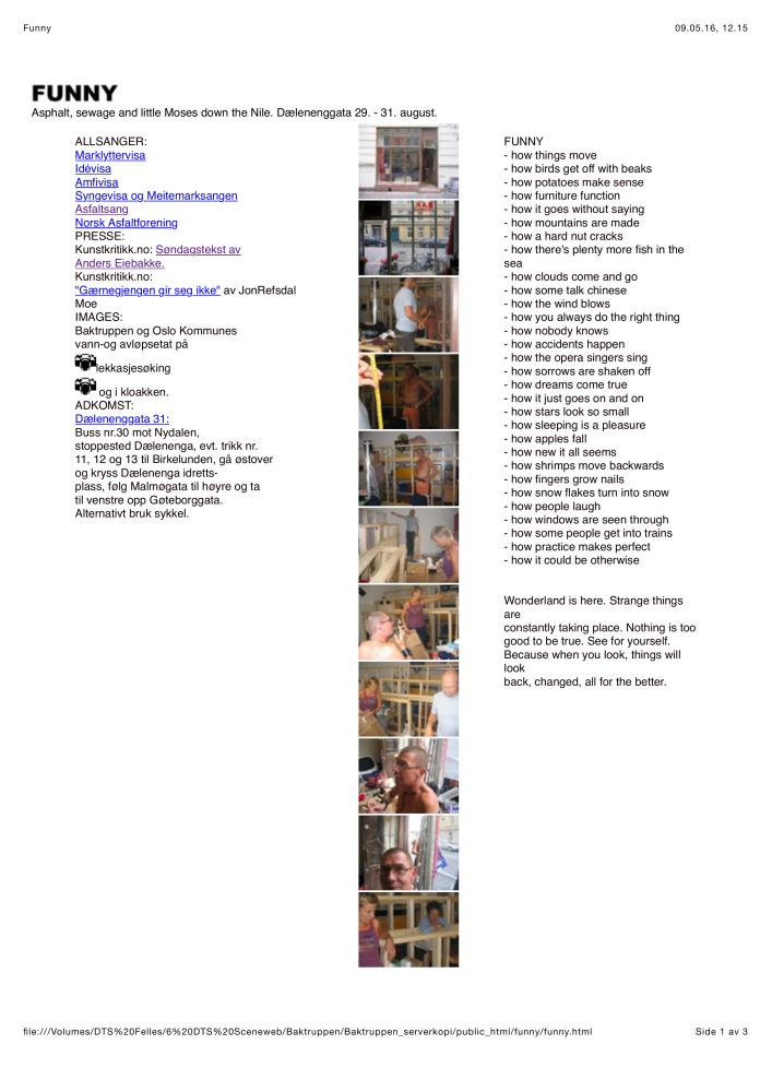 Informasjon om Baktruppens produksjon "Funny" (2003)