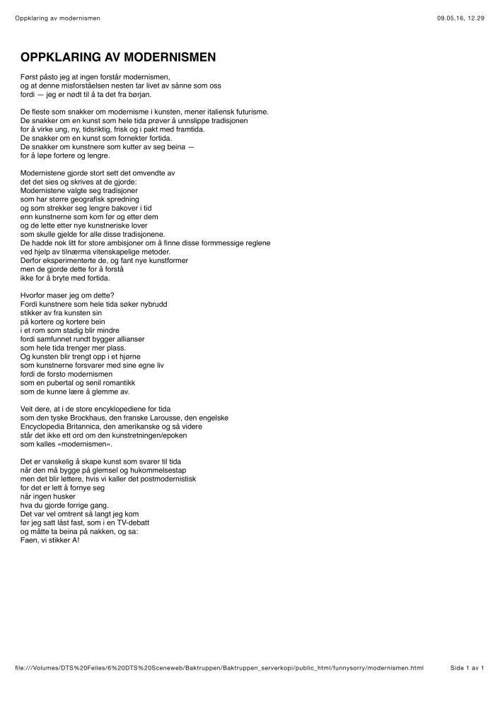 Informasjonsark om Baktruppens produksjon "FunnySorry" (2003)