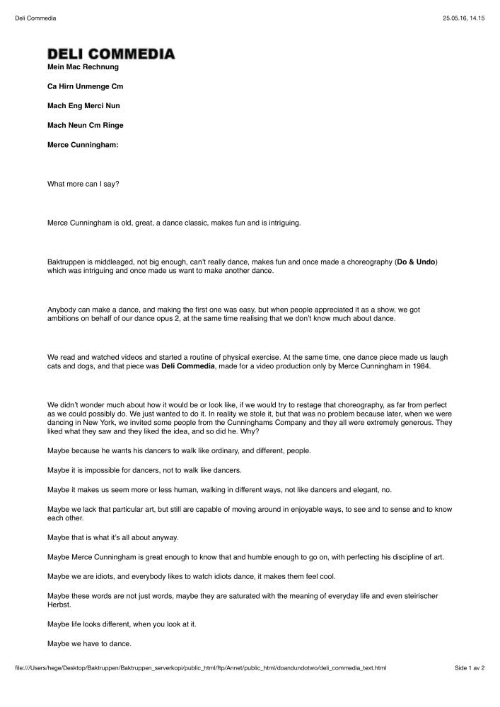 Tekst fra Baktruppens produksjon "Deli Commedia" (2004)