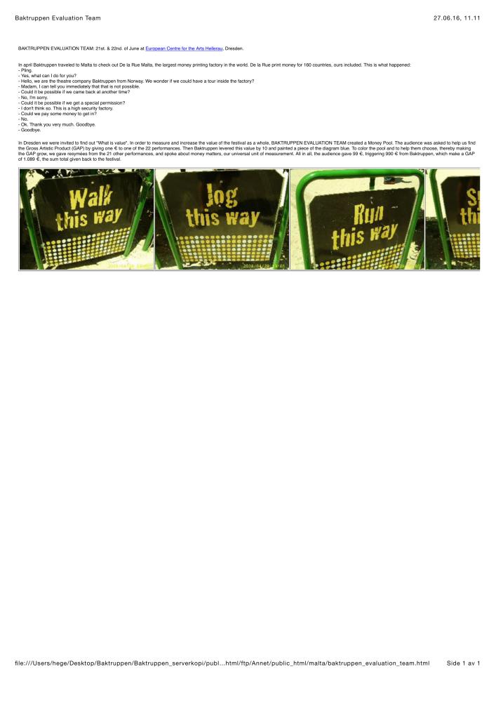 Informasjonsark i forbindelse med Baktruppens performance Baktruppen Evaluation Team (2008)