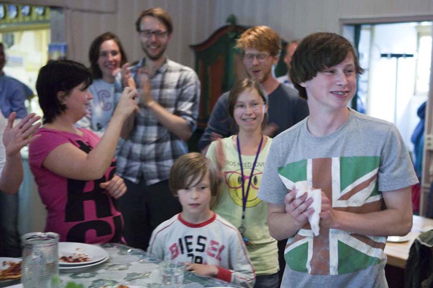 Fotografi fra Baktruppens performance "First waffle, then morality" (2010