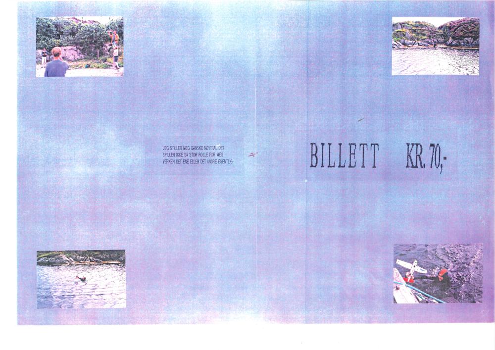 Billett fra Baktruppens performance «Jeg stiller meg ganske nøytral det spiller ikke så stor rolle for meg verken det ene eller det andre egentlig» (1992).