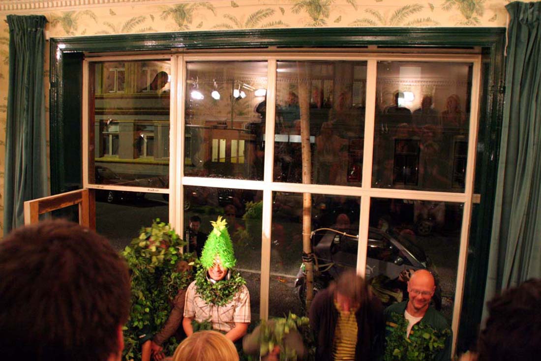 Foto i forbindelse med Baktruppens performance "Buskens år" (2006).