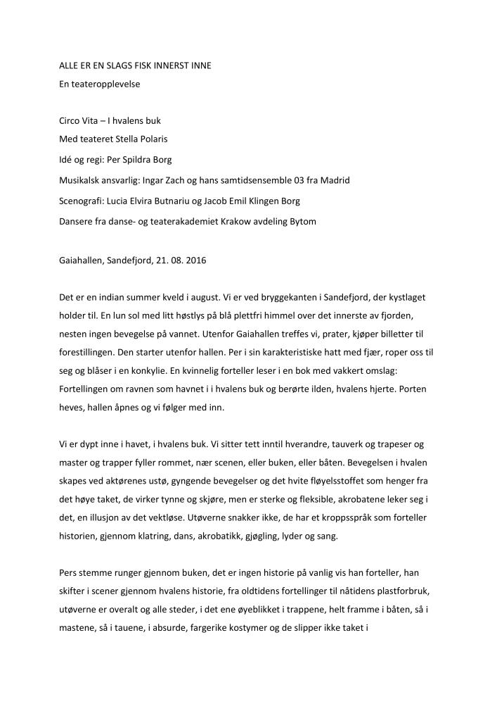 Artikkel om Stella Polaris' produksjon Circo Vita - I hvalens buk (2016)