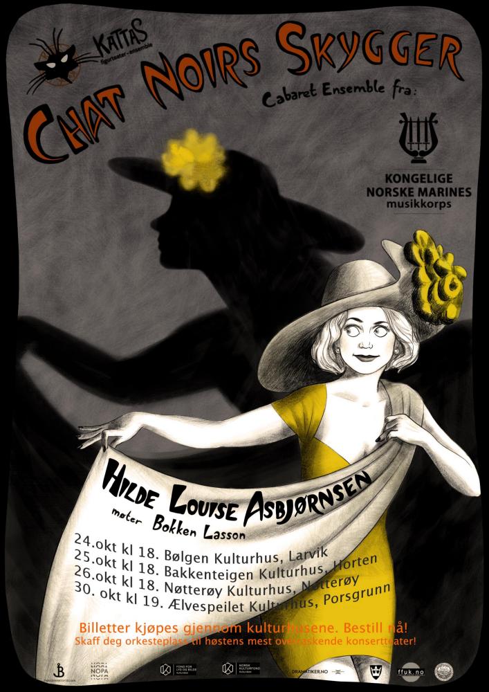 Flygeblad for Kattas Figurteater Ensembles produksjon Chat Noirs skygger (2016)