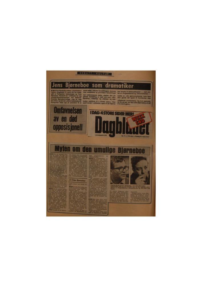 Debattinnlegg i Dagbladet av Tone Bjørneboe om Jens Bjørneboe og teatret