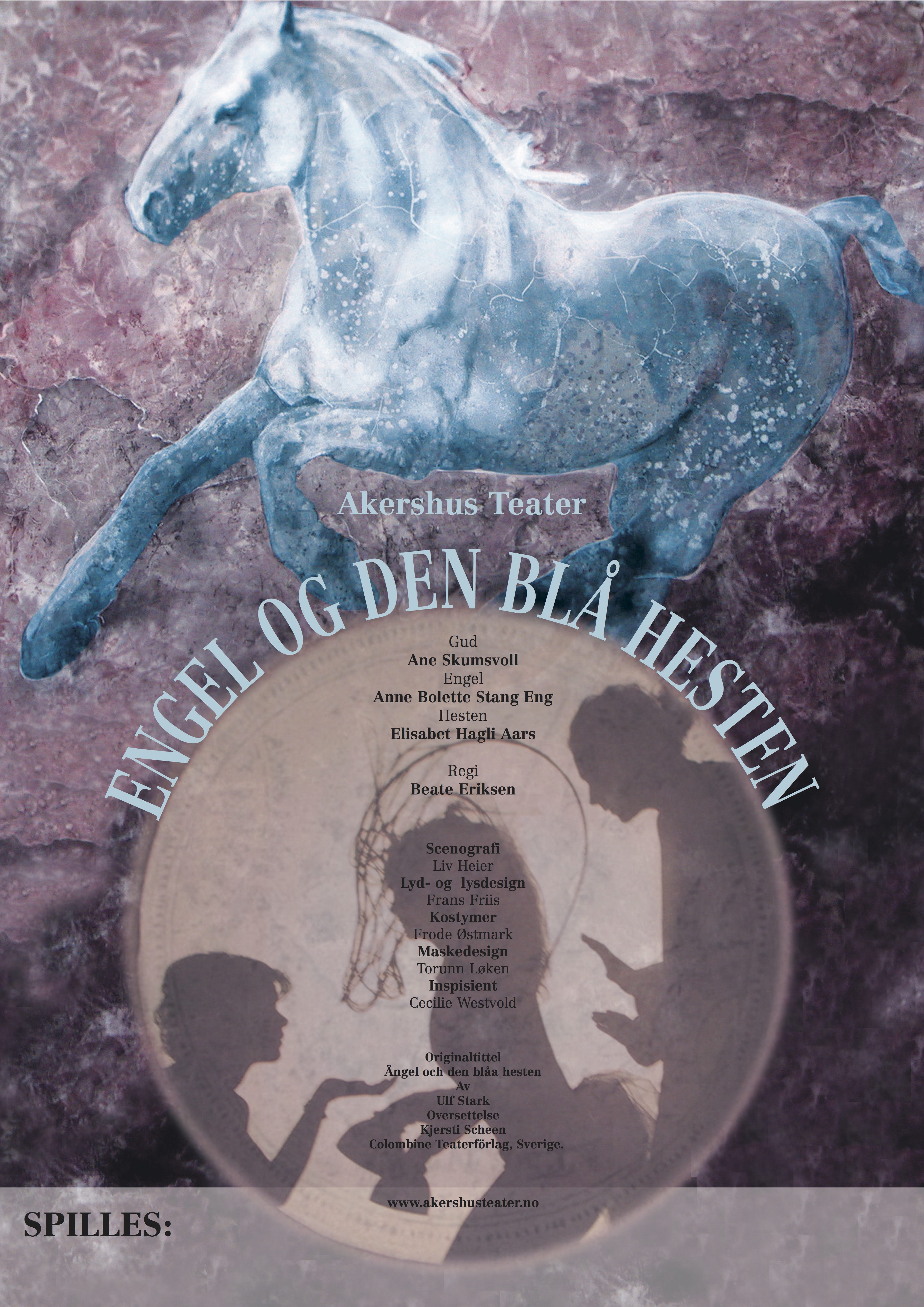Plakat fra Teater Spillebrikkene og Akershus Teaters produksjon Engel og den blå hesten (2007)