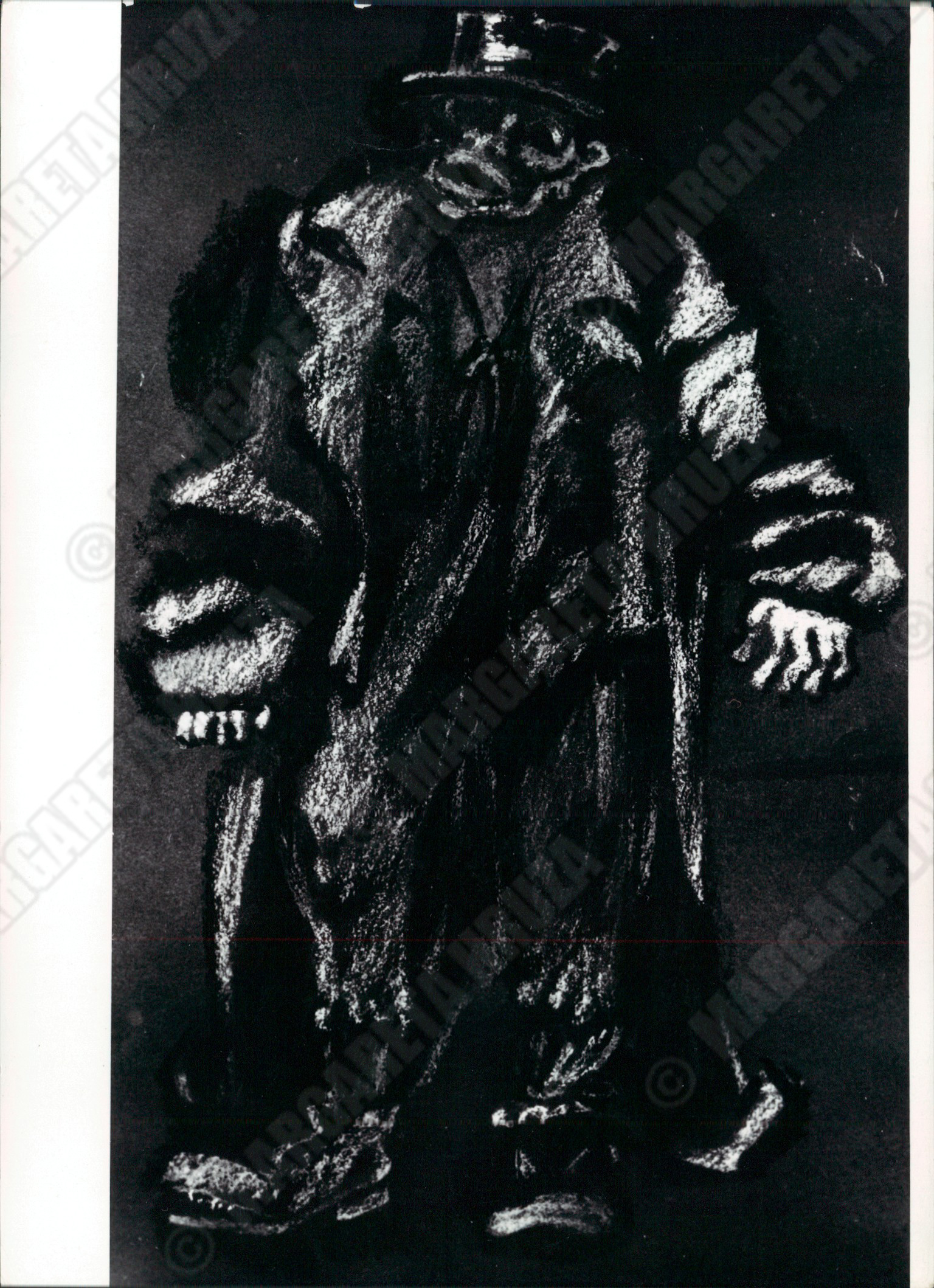 Photo of a costume drawing by Lubos Hruza for the production Raskolnikov. The production was performed at The National Theatre's main stage, opening September 11 1968.