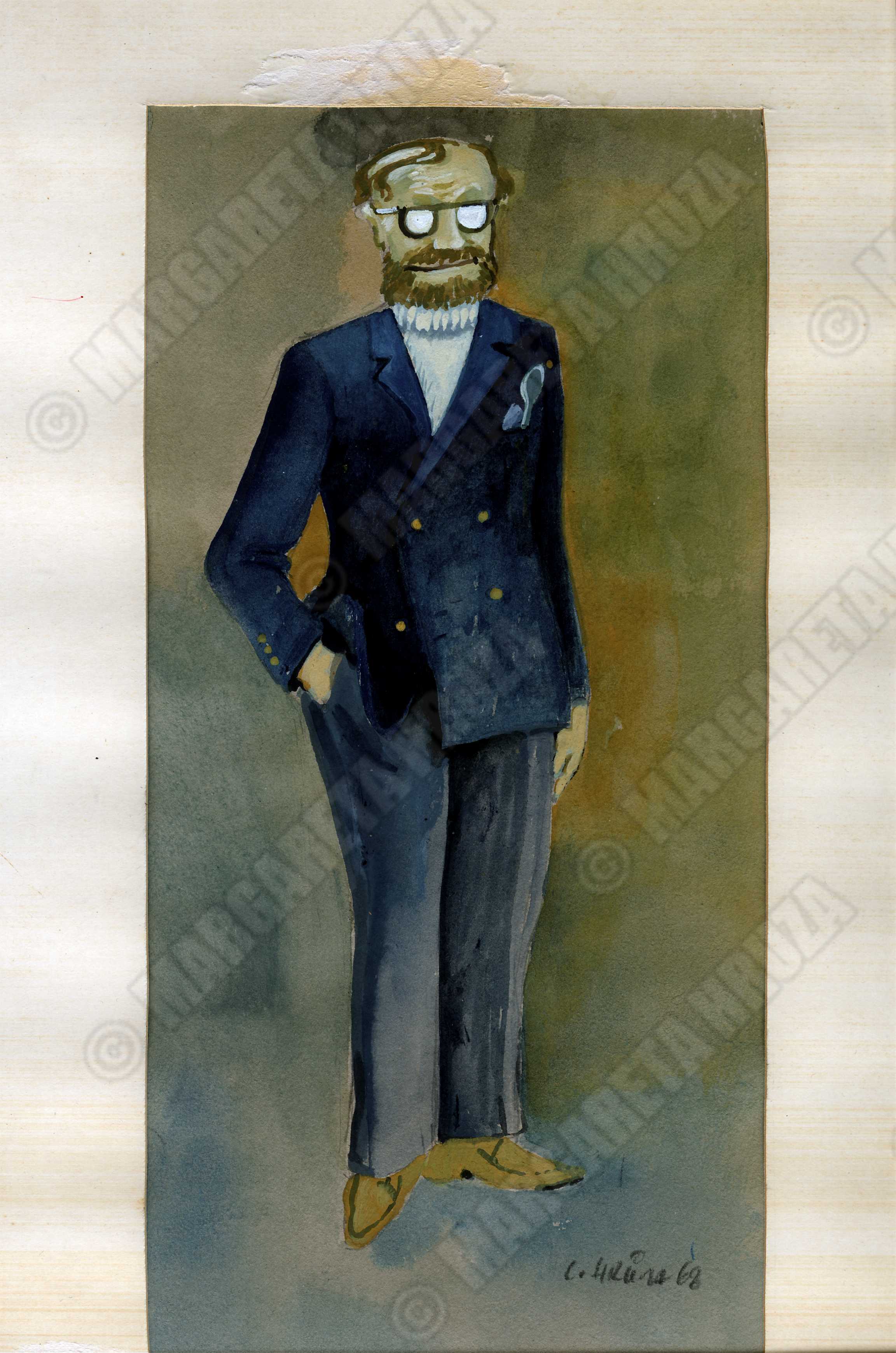 Kostymetegning av Lubos Hruza til rollen Dr. Stenek Kunz, Ptydomet i Sirkulæret, 1969, Nationaltheatret