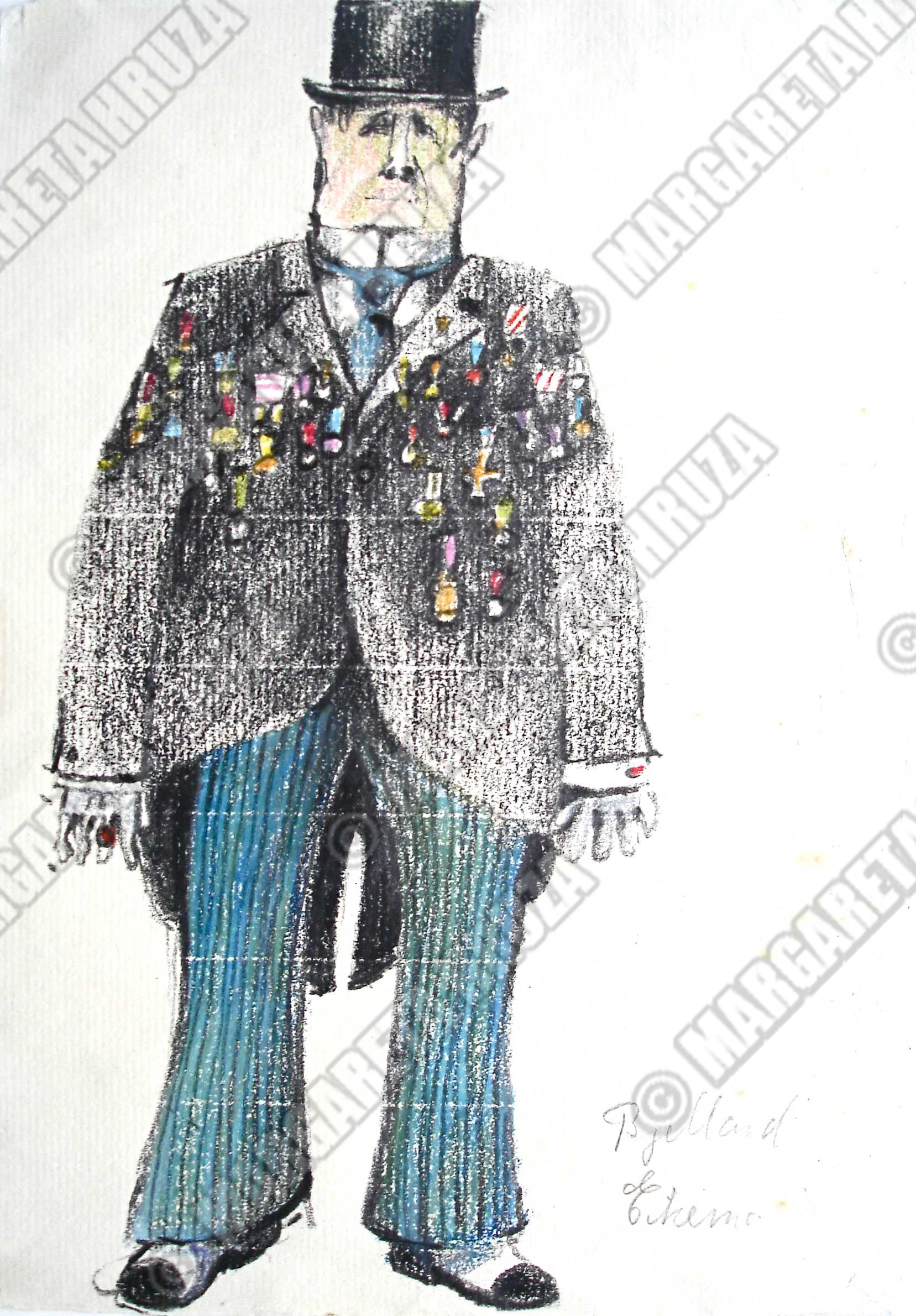 Costume drawing by Lubos Hruza for The National Theatre's production Leonce and Lena (1972)