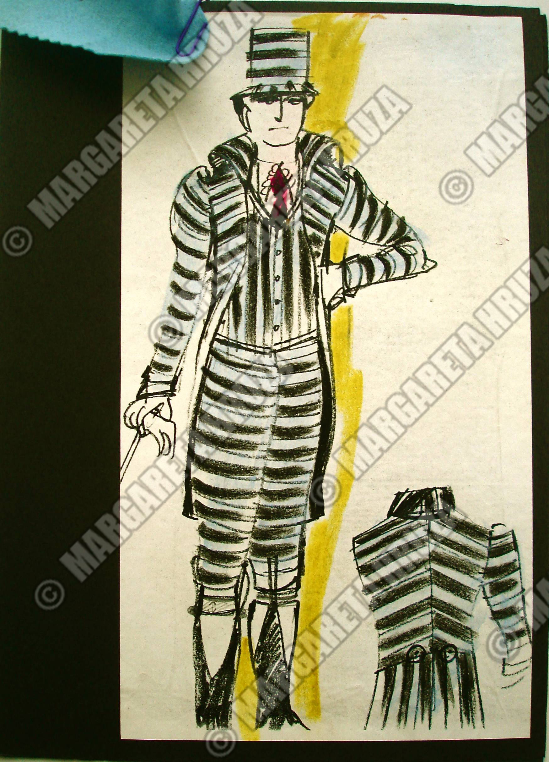 Kostymetegning av Lubos Hruza fra Don Pasquale, 1976, Den Norske Opera & Ballett