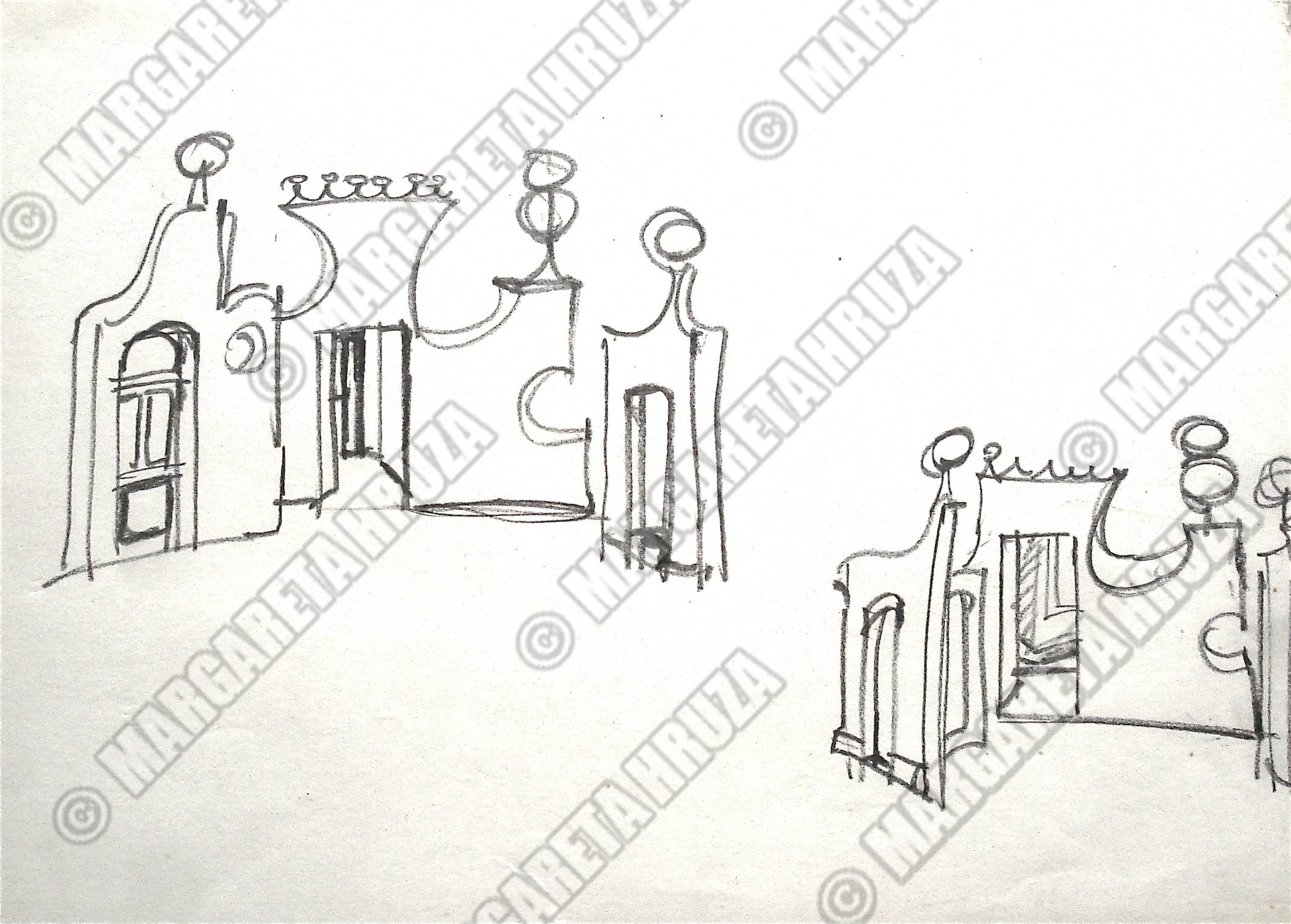 Skisse av Lubos Hruza til sceneløsning av Don Pasquale, 1976, Den Norske Opera & Ballett