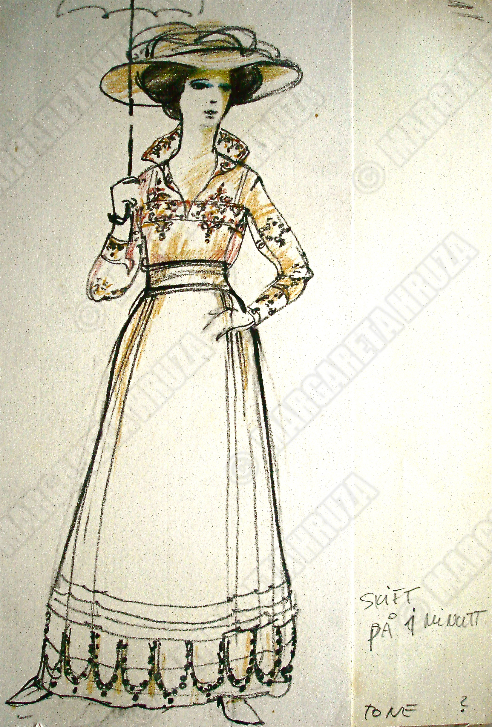 Kostymetegning av Lubos Hruza til rollen Jelena Nikolajevna i Solens Barn, 1979, Nationaltheatret