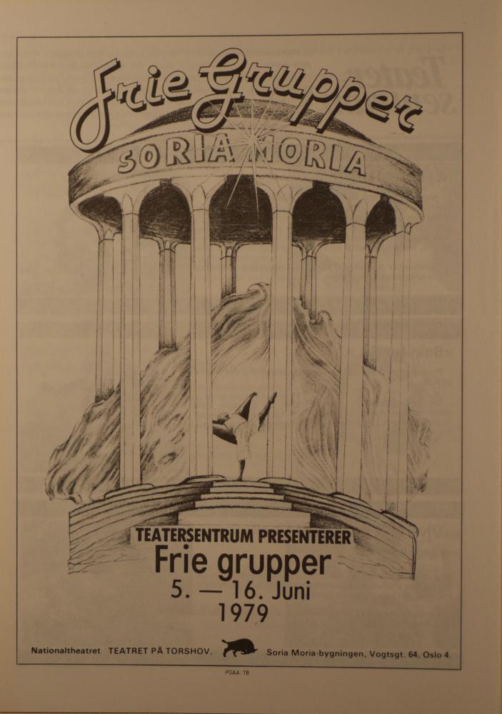 Festival program for the festival Frie Gruppers Festival (literally: Independent companies' festival). Arranged by Performance Art Hub Norway and The Torshov Theatre June 5-16 1979.