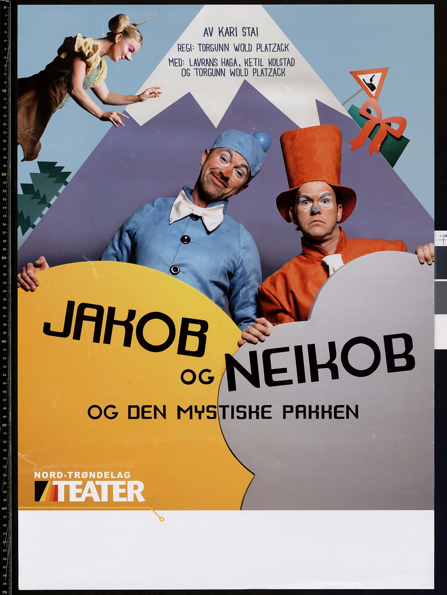 Plakat for Nord-Trøndelag Teaters produksjon Jakob og Neikob og den mystiske pakken (2013)