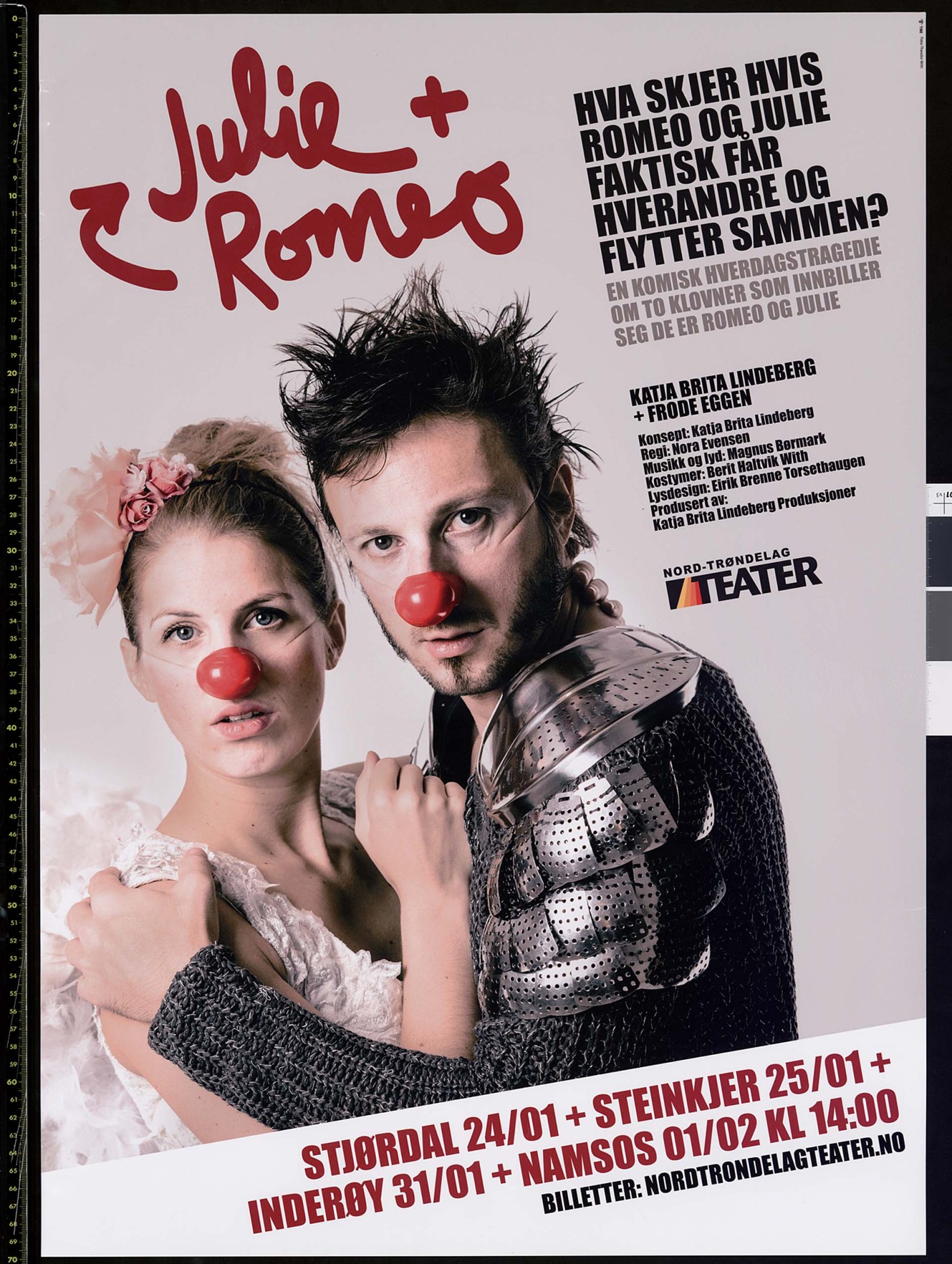 Poster for Katja Brita Lindeberg's Juliet + Romeo (2013).The poster is for one of the tour, produced by The Touring Theatre of Trøndelag (then called Nord-Trøndelag Theatre).