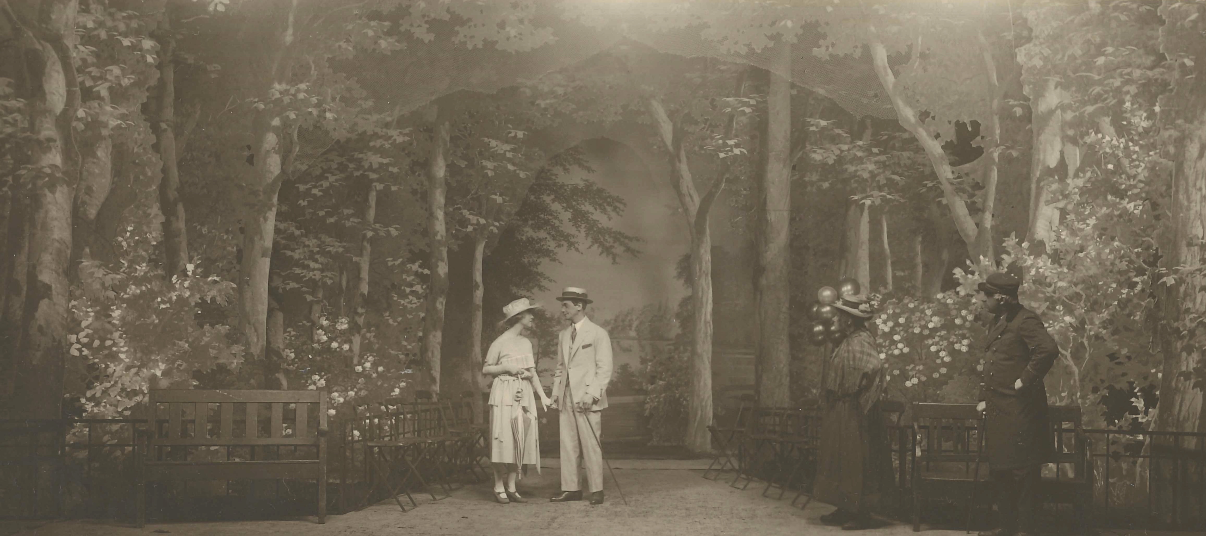 Fotografi fra Den Nationale Scenes produksjon Damen i lyserødt (1921)