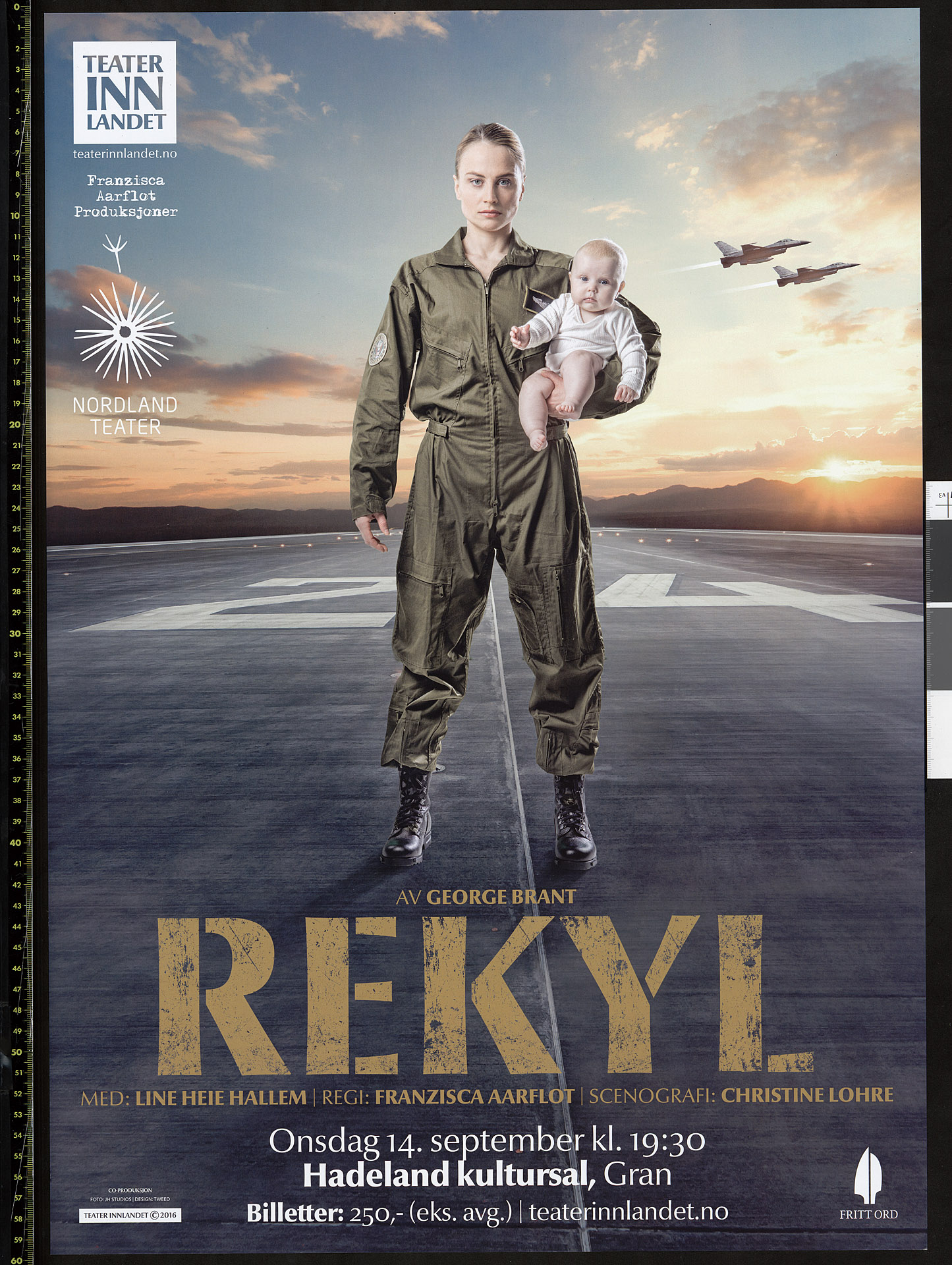 Poster for Teater Innlandet, Franzisca Aarflot Productions and Nordland Theatre's production Grounded (2016). The poster is from the performance September 14 2016 atHadeland kultursal, Gran.