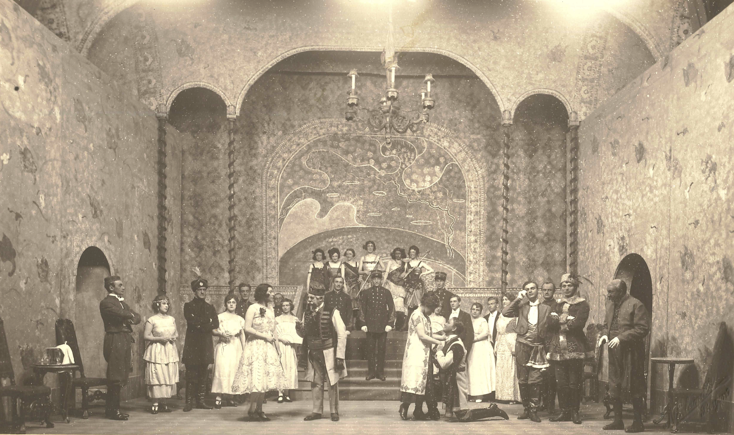 Fotografi fra Den Nationale Scenes produksjon Den glade Enke (1922)