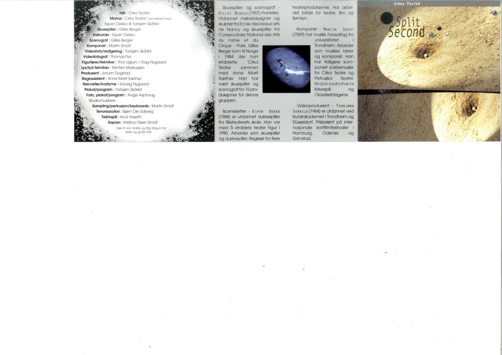Forestillingsprogram for Cirka Teaters produksjon Split Second (1999)
