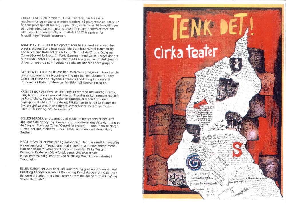 Forestillingsprogram for Cirka Teaters produksjon Tenk det! (2001).