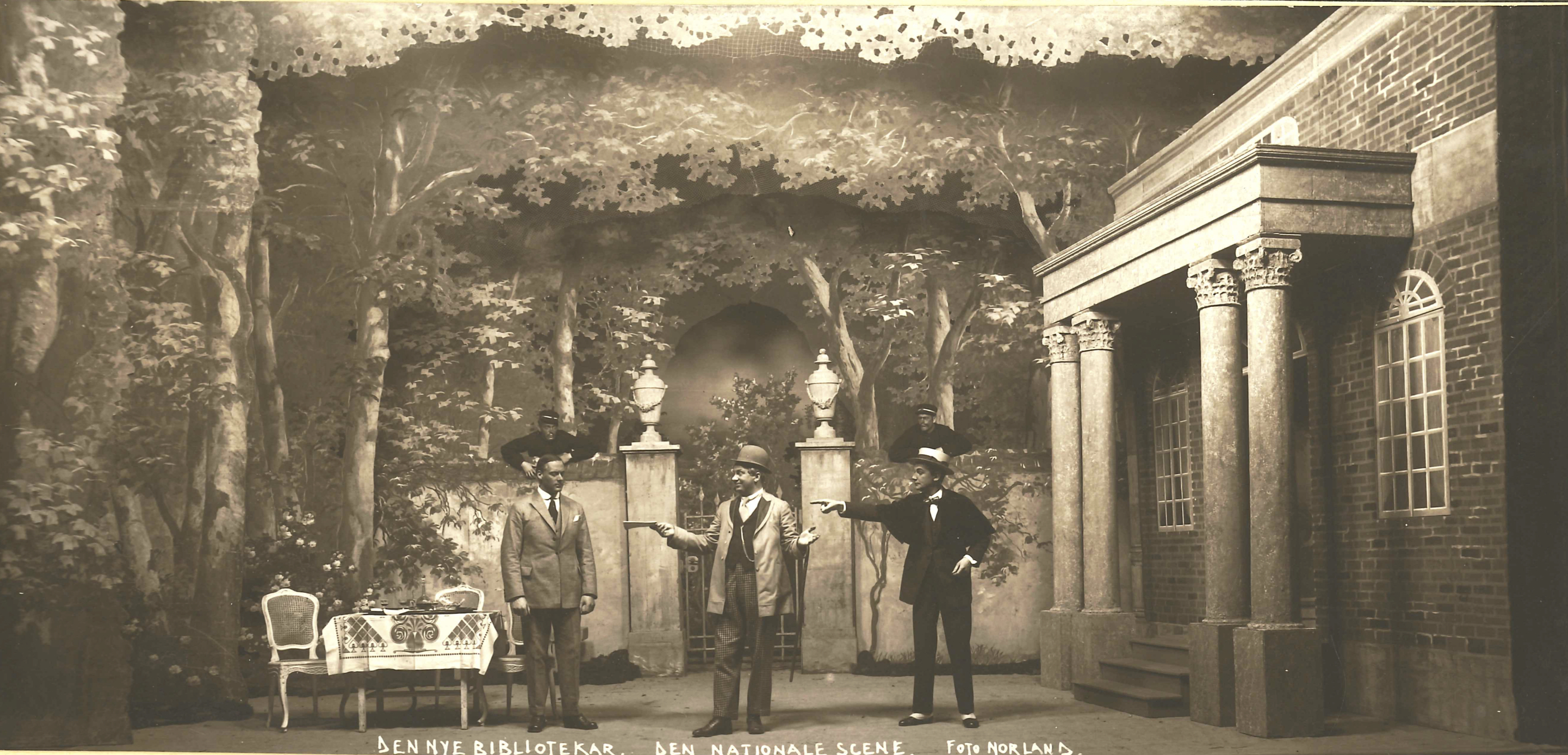 Fotografi fra Den Nationale Scenes produksjon Den nye bibliotekar (1923)