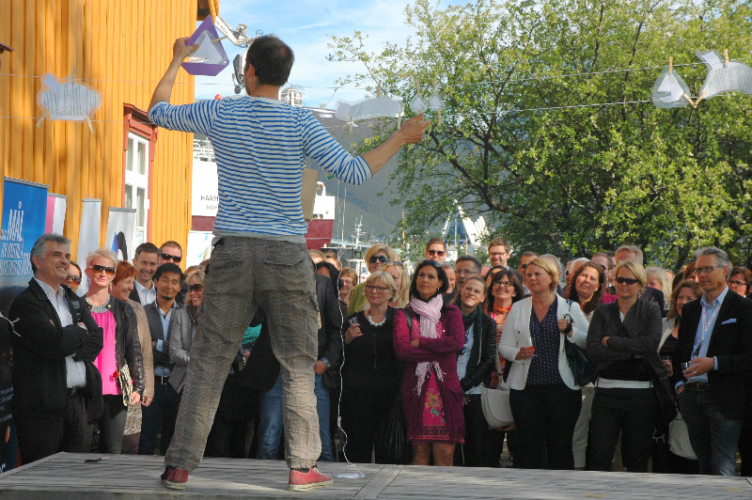 Fotografi fra Sadio Nor Teaters produksjon Slaget på Tromsø havn (2010).