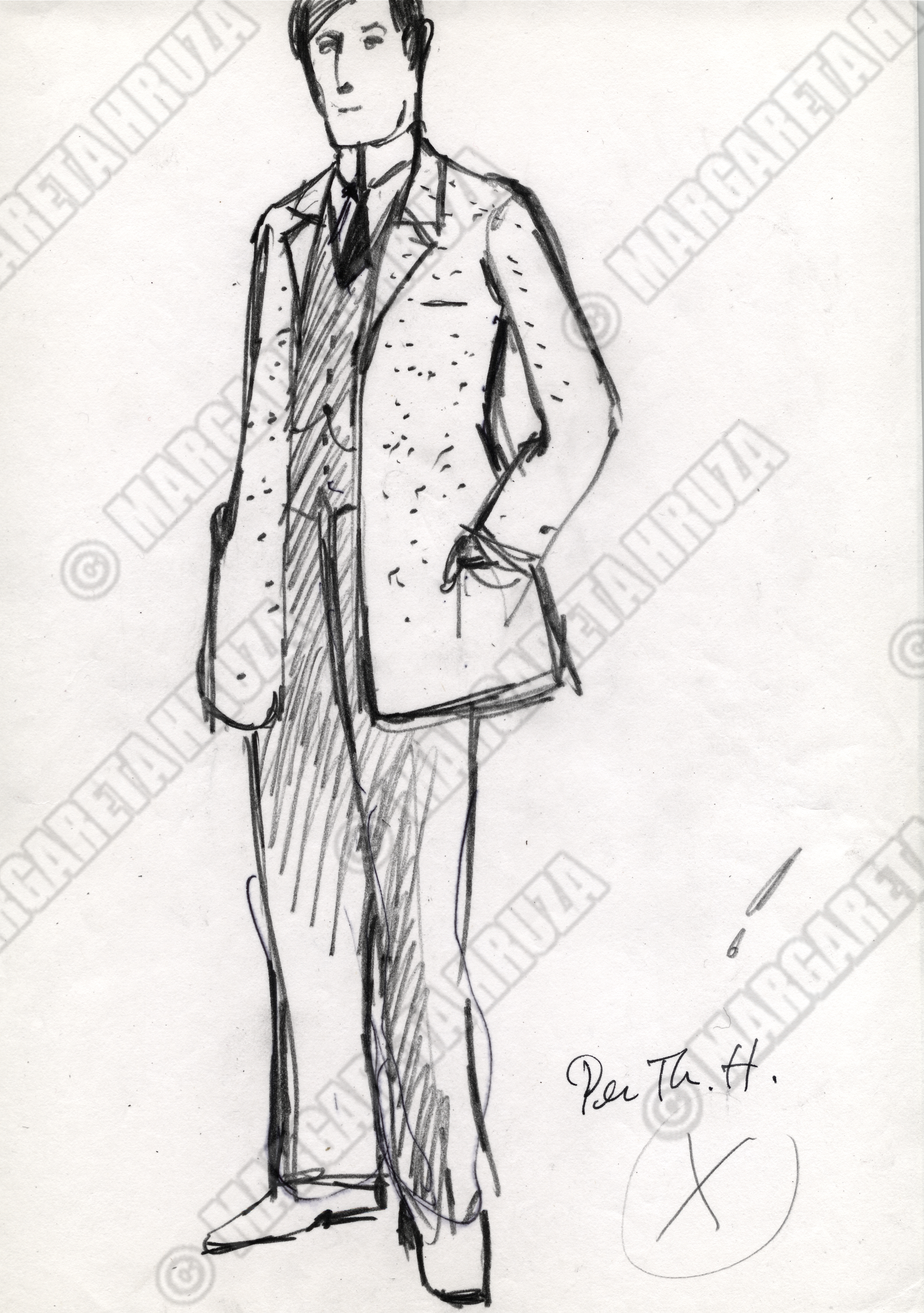Costume drawing by Lubos Hruza for the costume for Per Theodor Haugen in the role of doctor Stockmann, An Enemy of the People, The National Theatre 1979.