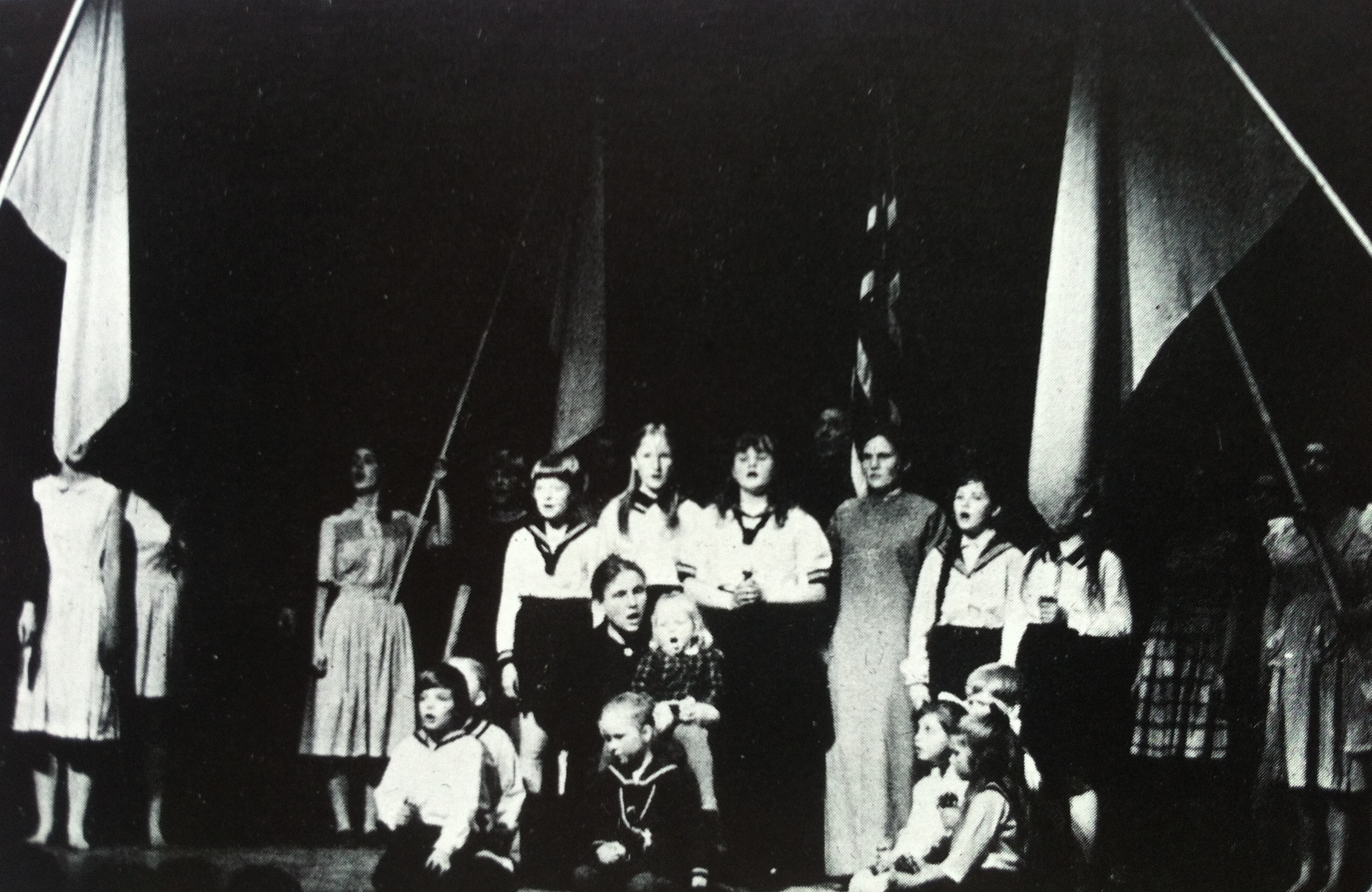 Fotografi fra Suttungteatrets produksjon Vi løfter de lenkede hendene våre (1973)