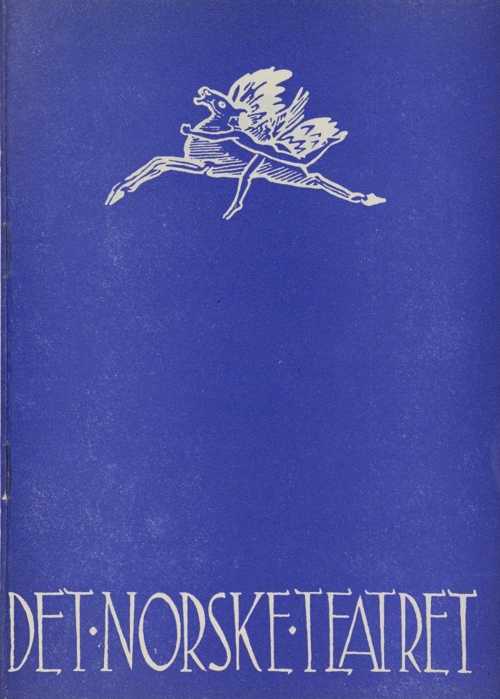 Performance program for The Norwegian Theatre's production Miss Julie (1951). The program is for the jubilee tour, arranged by The Norwegian Theatre in collaboration with The Norwegian Touring Theatre.