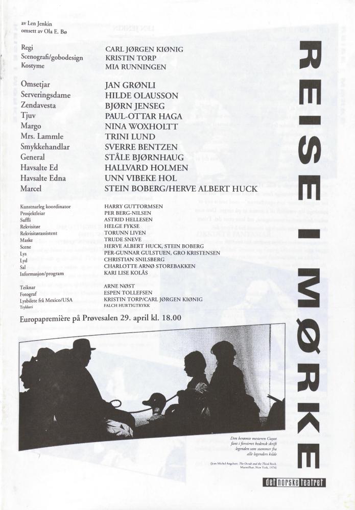Forestillingsprogram for Det Norske Teatrets produksjon Reise i mørke (1995)