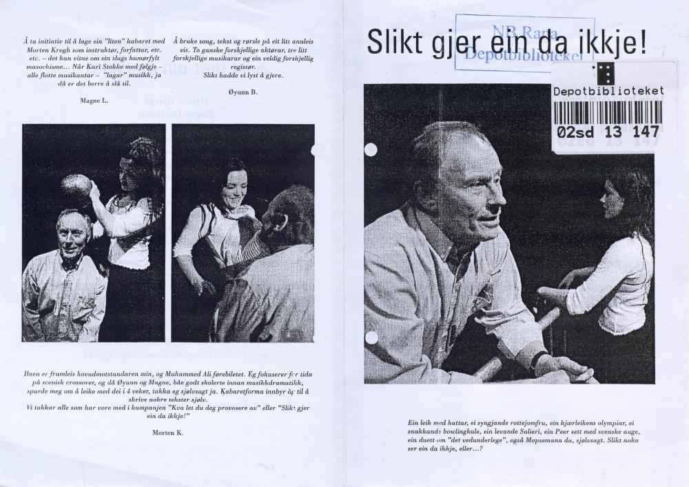 Forestillingsprogram for Det Norske Teatrets produksjon Slikt gjer ein da ikkje! (2002)