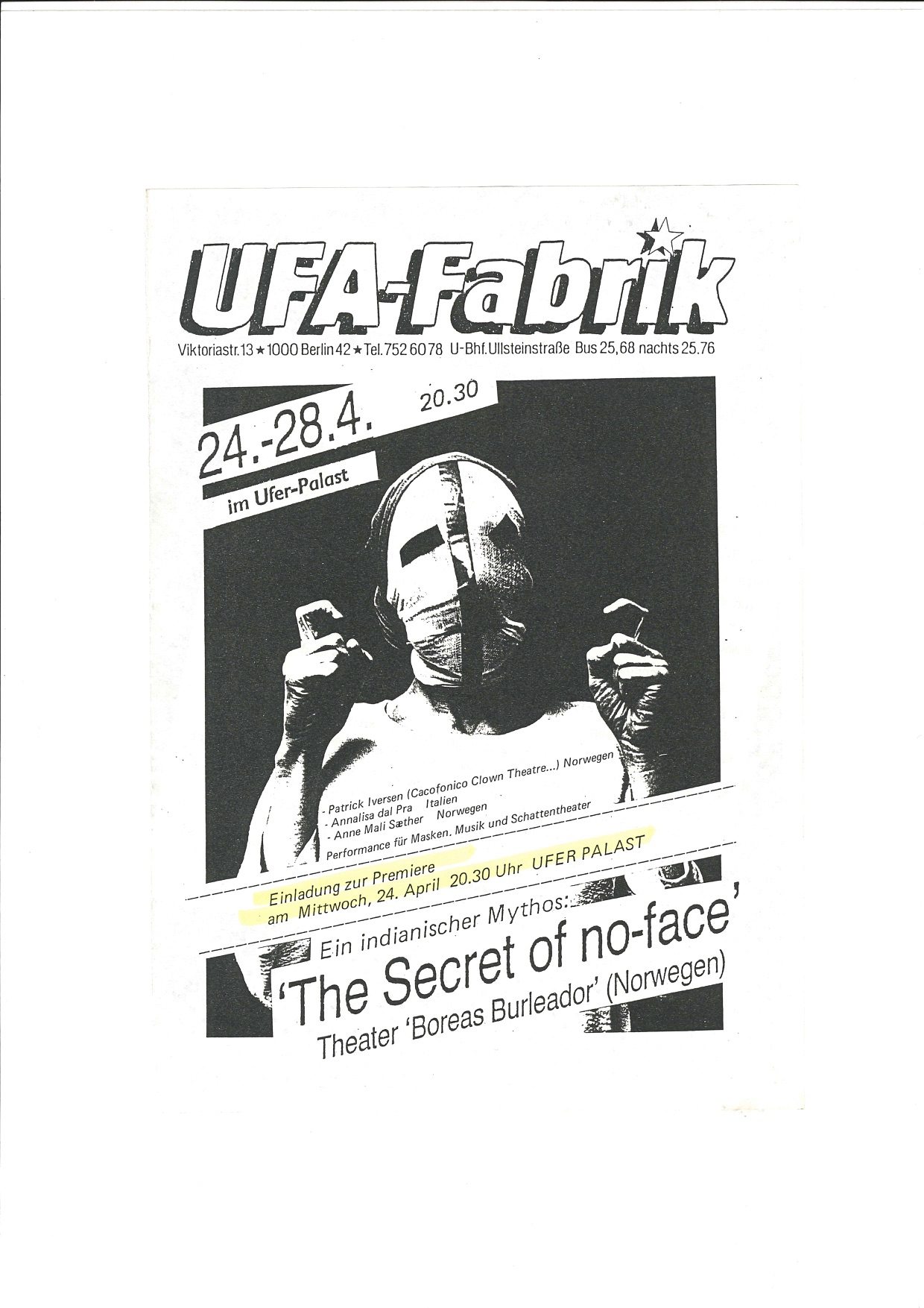 Plakat for Boreas Bulreadors produksjon The Secret of No-Face (1985)