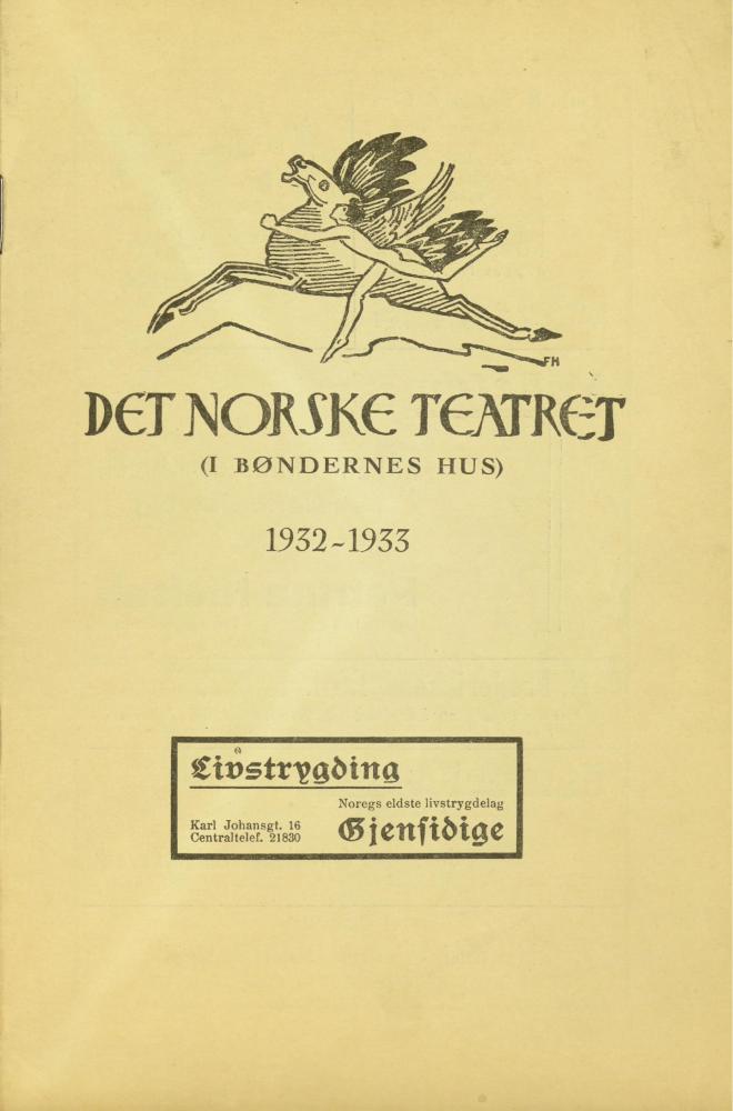 Forestillingsprogram for Det Norske Teatrets produksjon Vokenatt (1933)