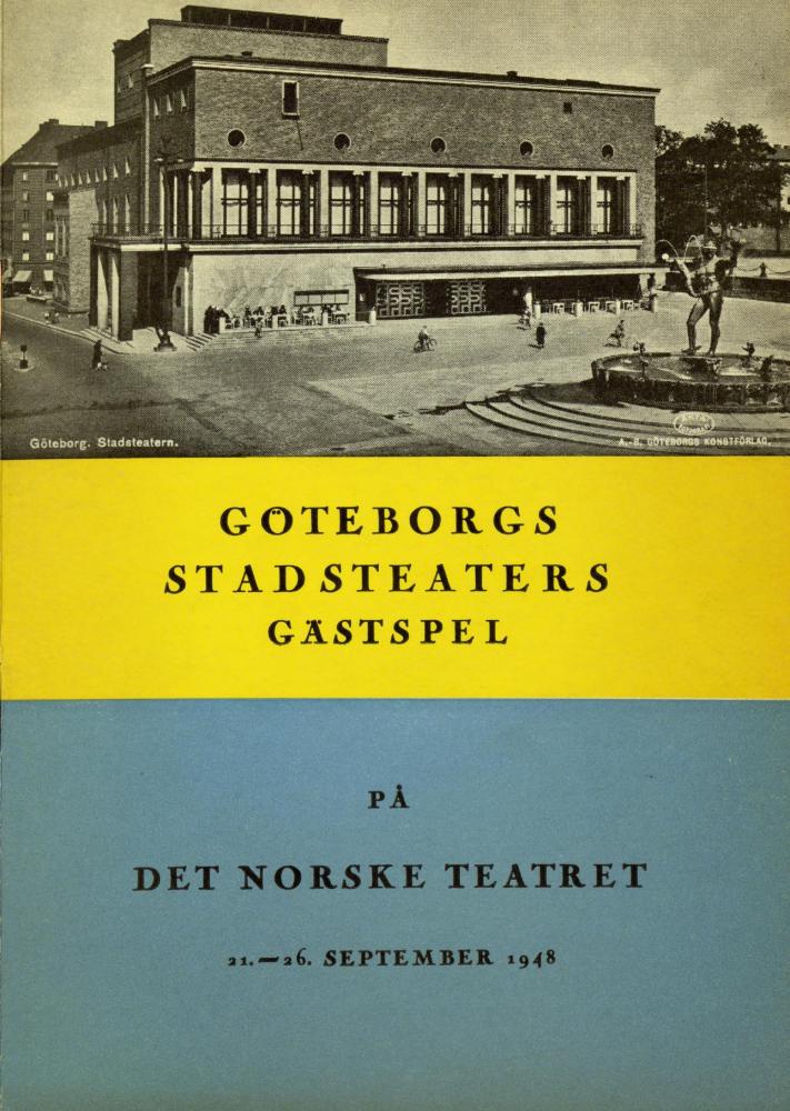 Forestillingsprogram for Göteborgs Stadsteaters produksjoner "Flickan från Lothringen", "Kårleksgåvan", "Fordringsågare" og "Mig till skräck" (1948)