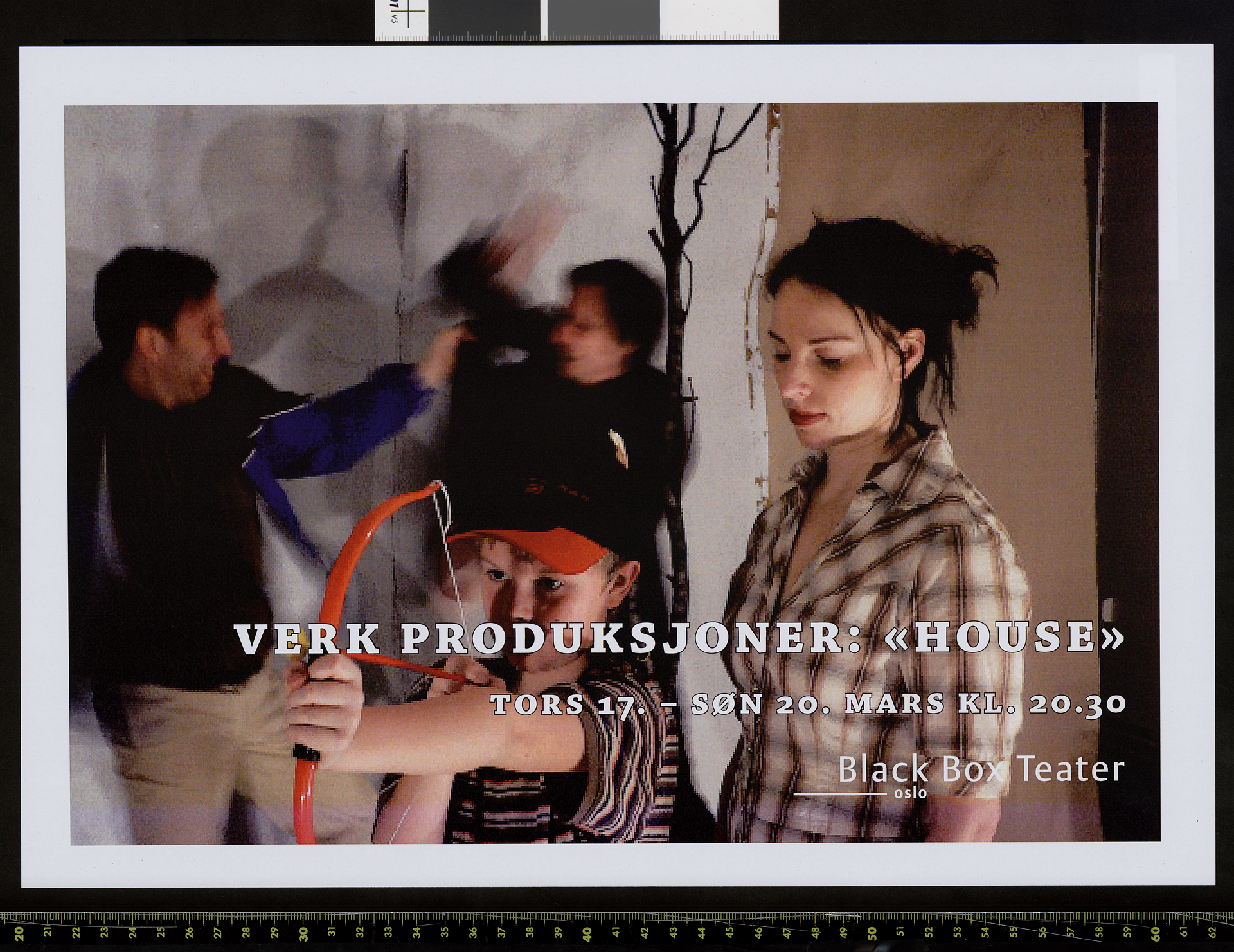 Poster from Verk Productions's production House (2005). The poster is from performance on the Black Box Theater/Parkteatret at march 2003.