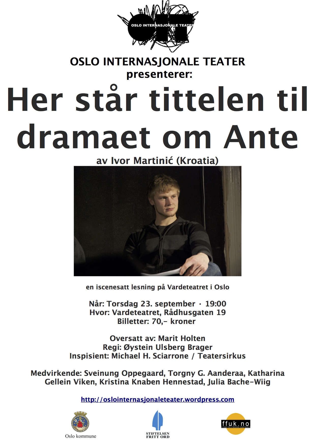 Plakat for Oslo Internasjonale Teaters produksjon "Her står tittelen til dramaet om Ante" (2010)