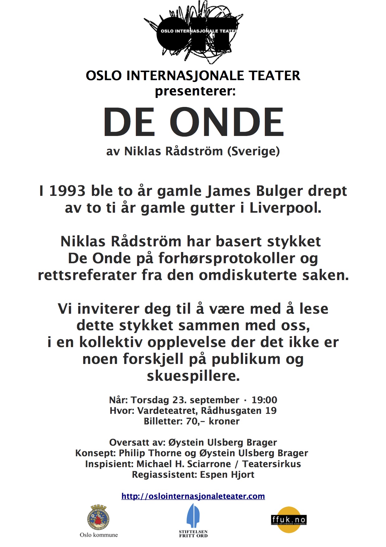 Plakat for Oslo Internasjonale Teaters produksjon De Onde (2010)