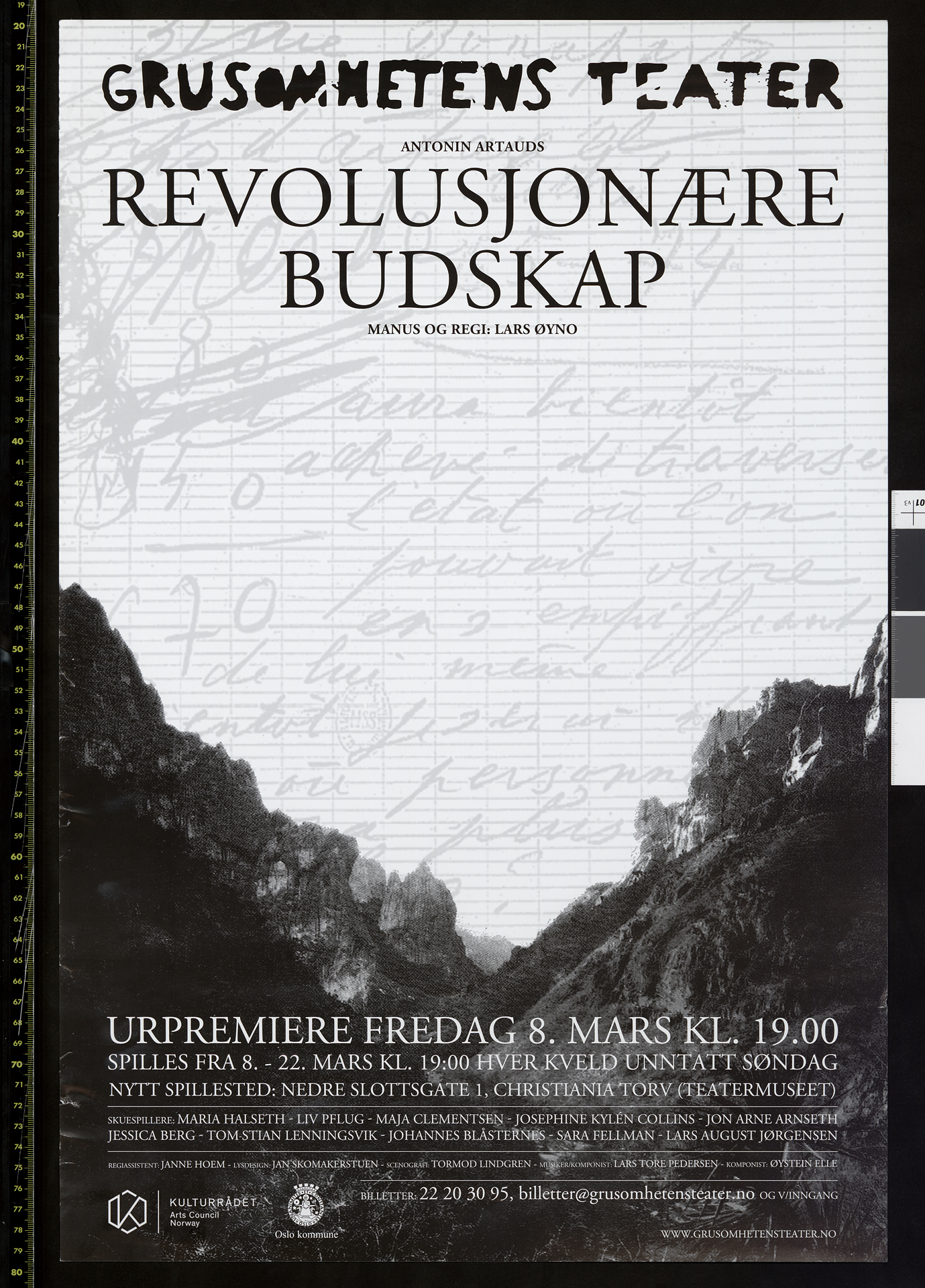 Plakat for Grusomhetens Teaters produksjon Revolusjonære Budskap (2013)