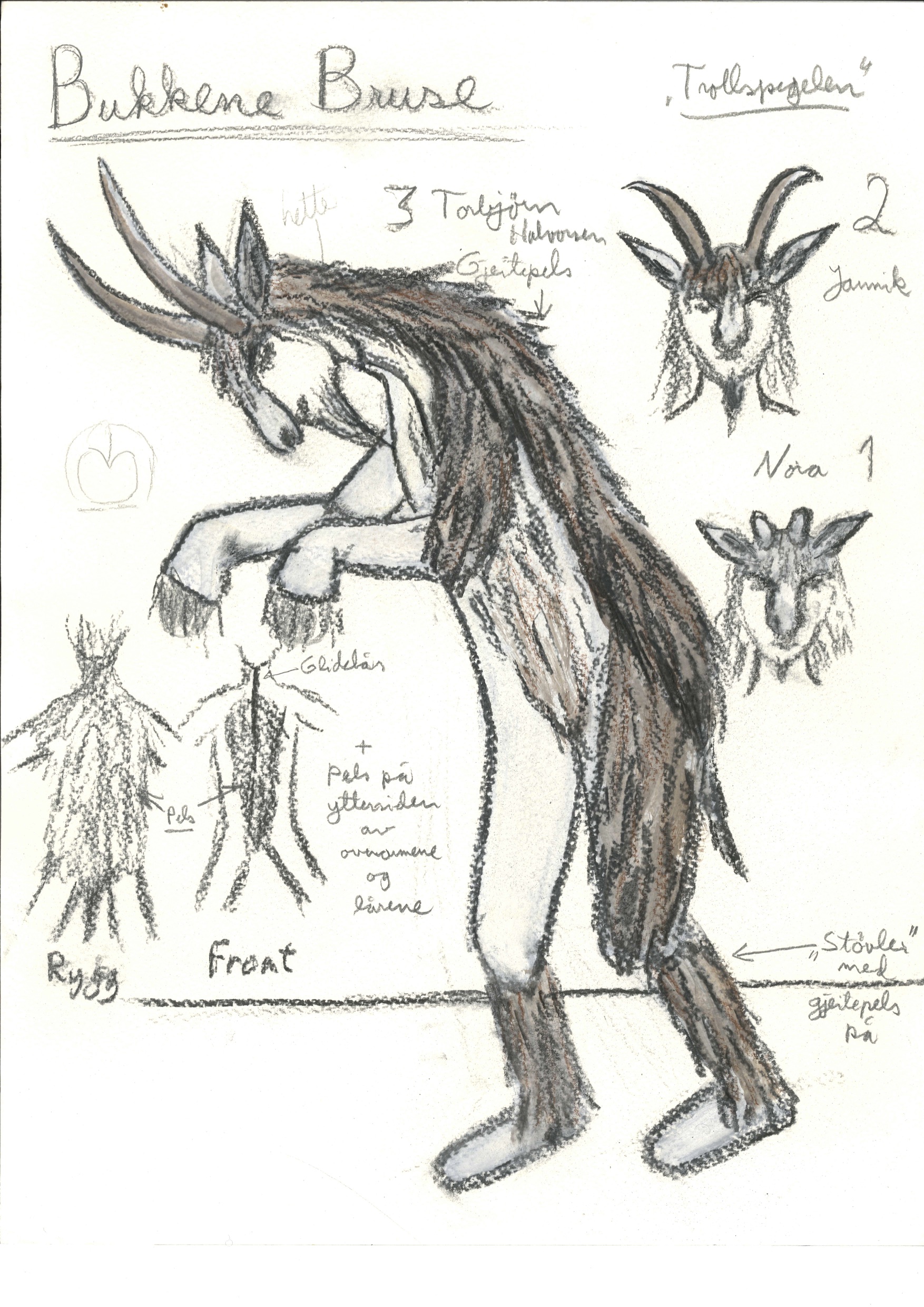 Kostymetegning av Einar Dahl fra Sogn og Fjordane Teaters produksjon Trollspegelen (1996).