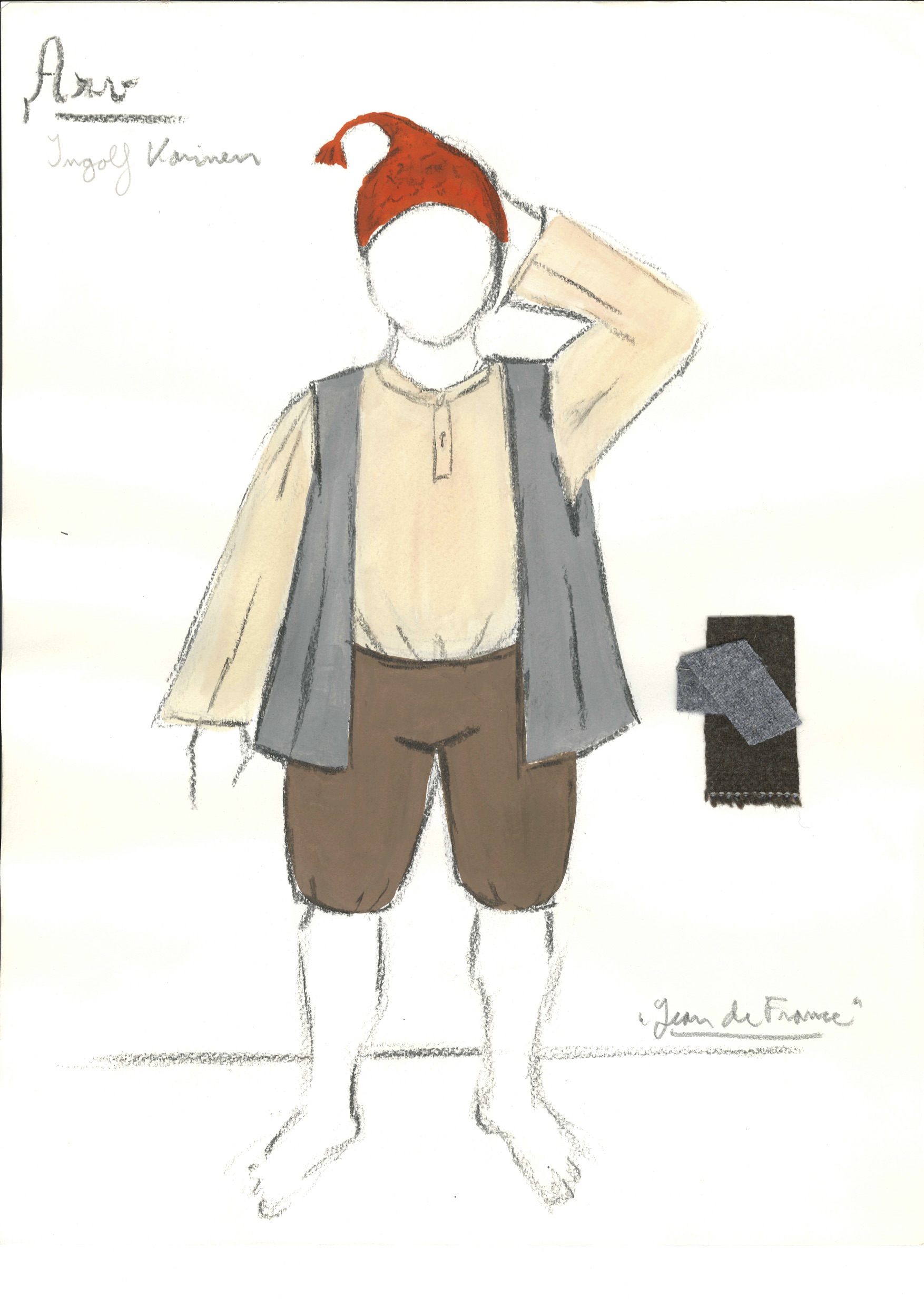 Kostymetegning av Einar Dahl fra Riksteatrets produksjon Jean de France (1985).