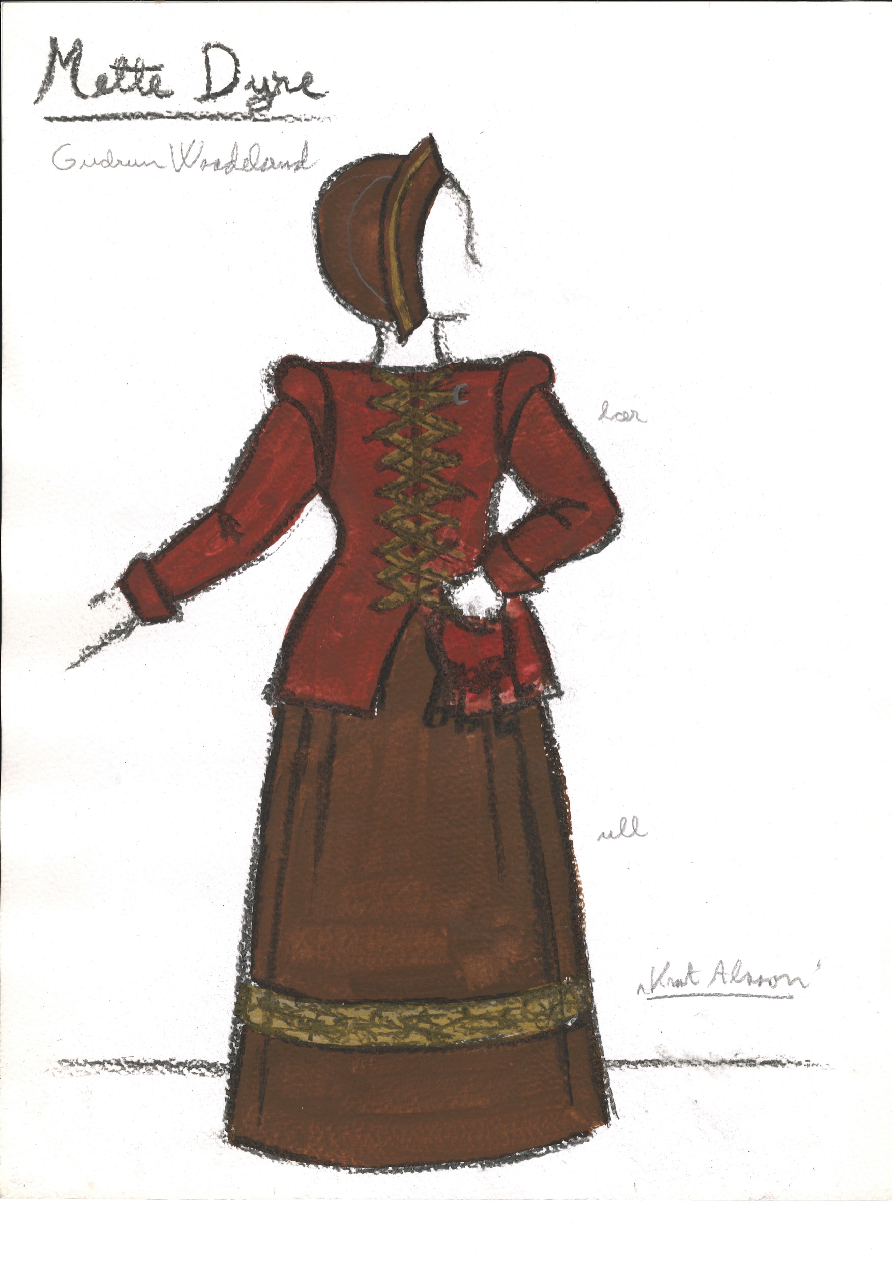 Kostymetegning fra Riksteatrets produksjon Knut Alvsson (1984).