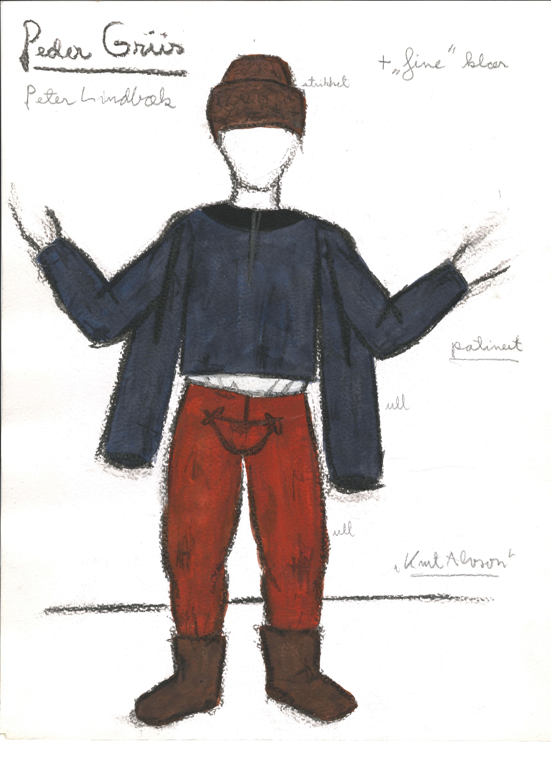 Kostymetegning fra Riksteatrets produksjon Knut Alvsson (1984).