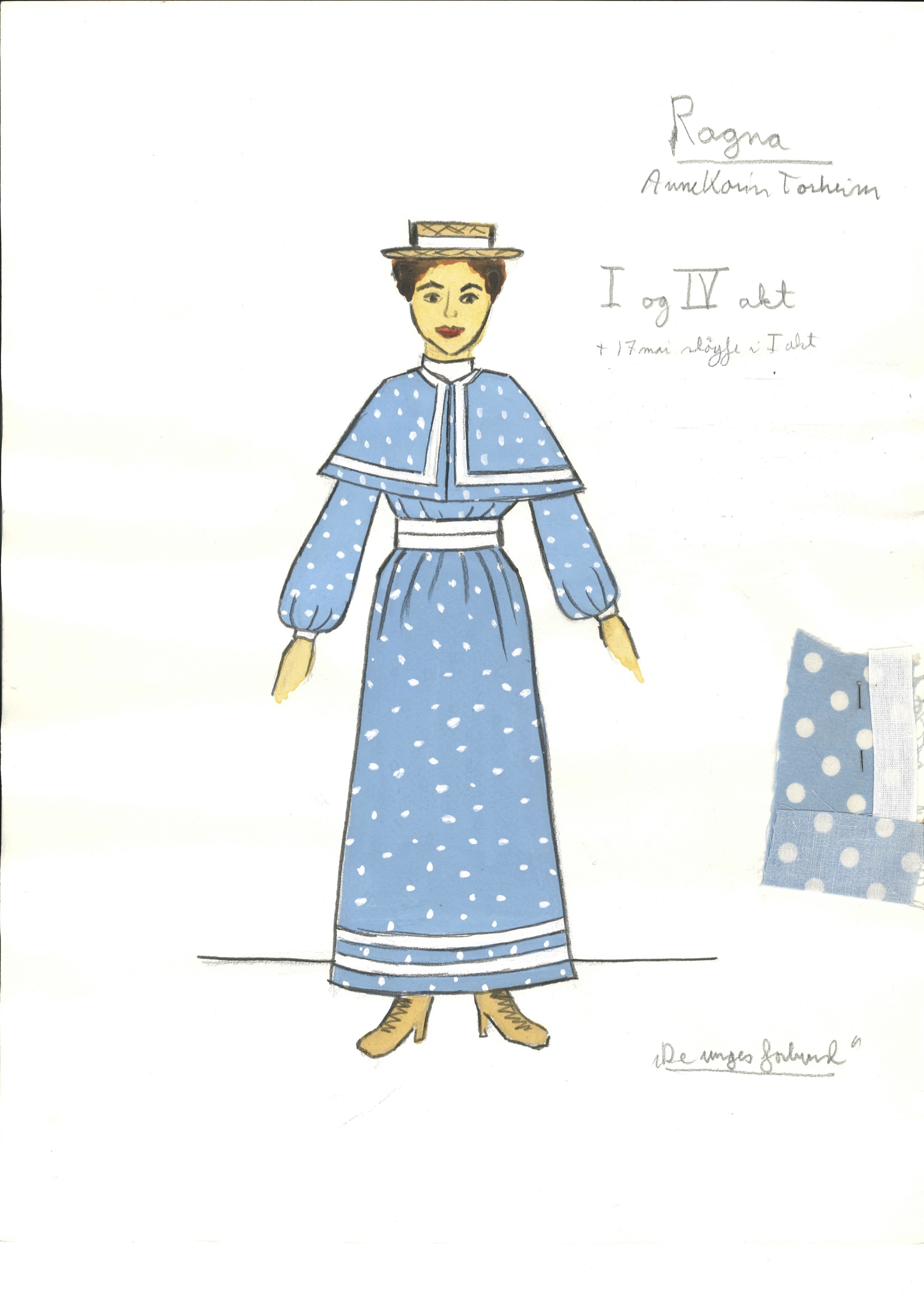 Kostymetegning fra Riksteatrets produksjon De unges forbund (1982).