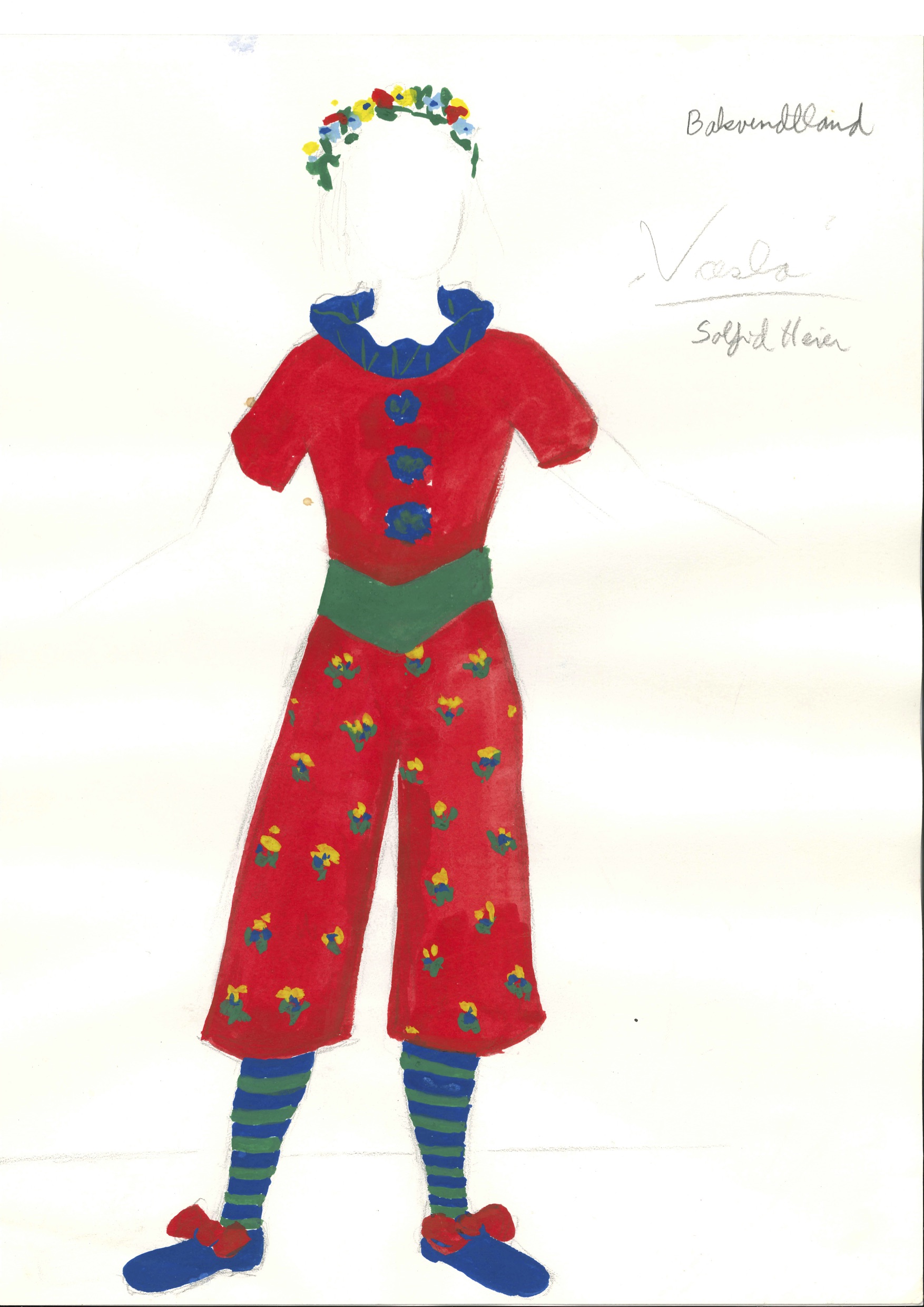 Kostymetegning av Einar Dahl fra Riksteatrets produksjon Bakventland (1979).