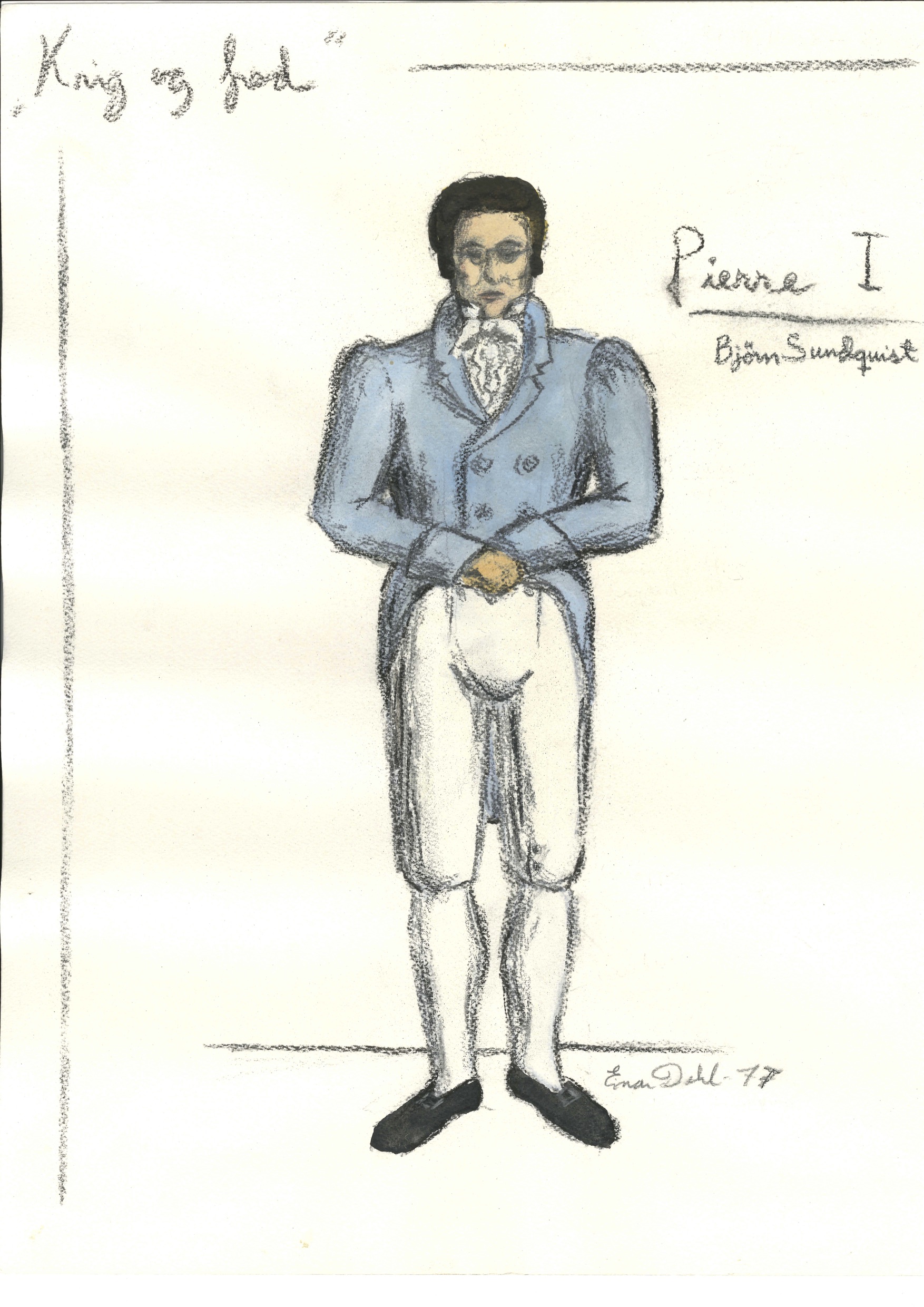 Kostymetegning av Einar Dahl fra Riksteatrets produksjon Krig og fred (1977)