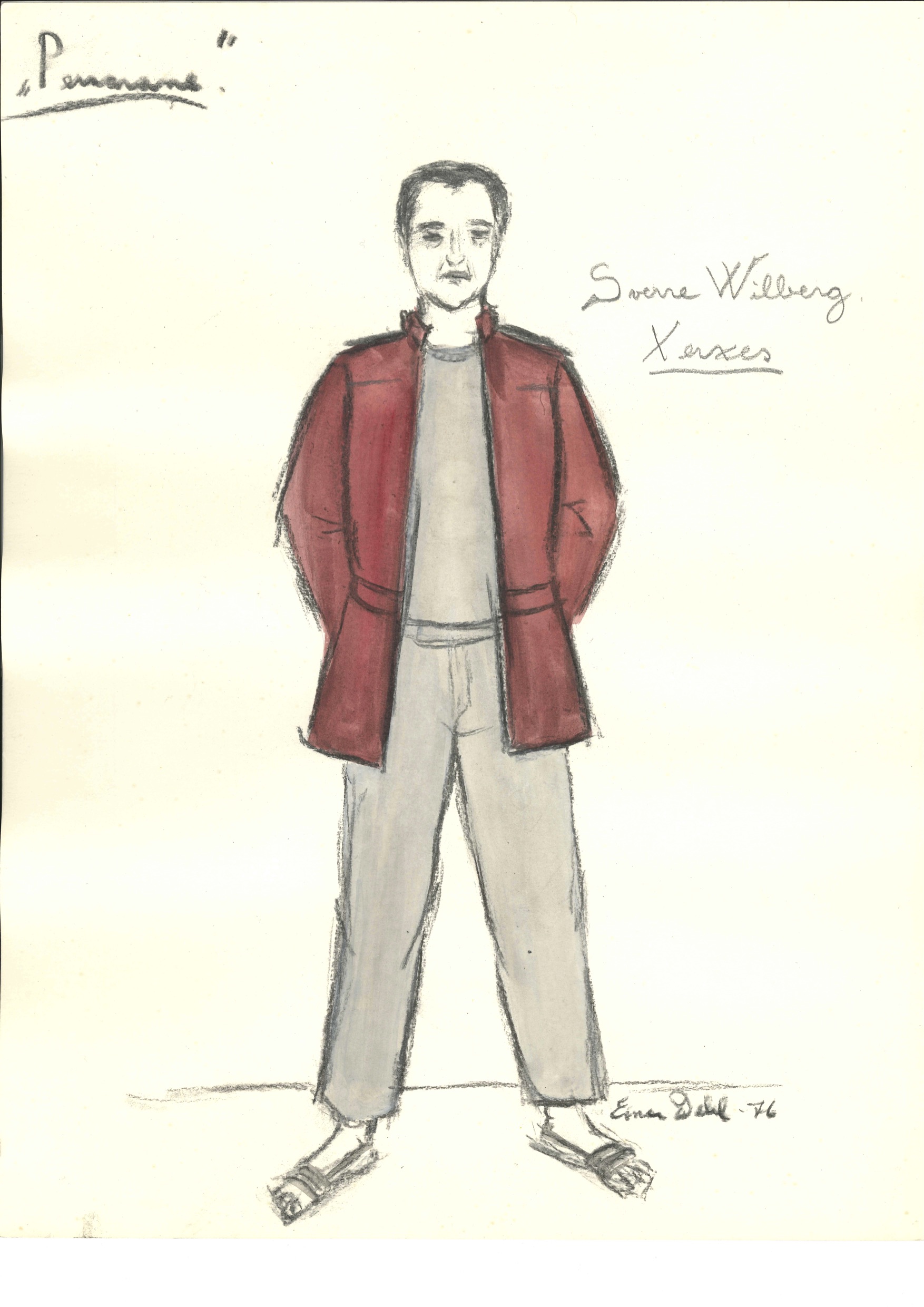 Kostymetegning av Einar Dahl fra Det Norske Teatrets produksjon Persarane (1976).